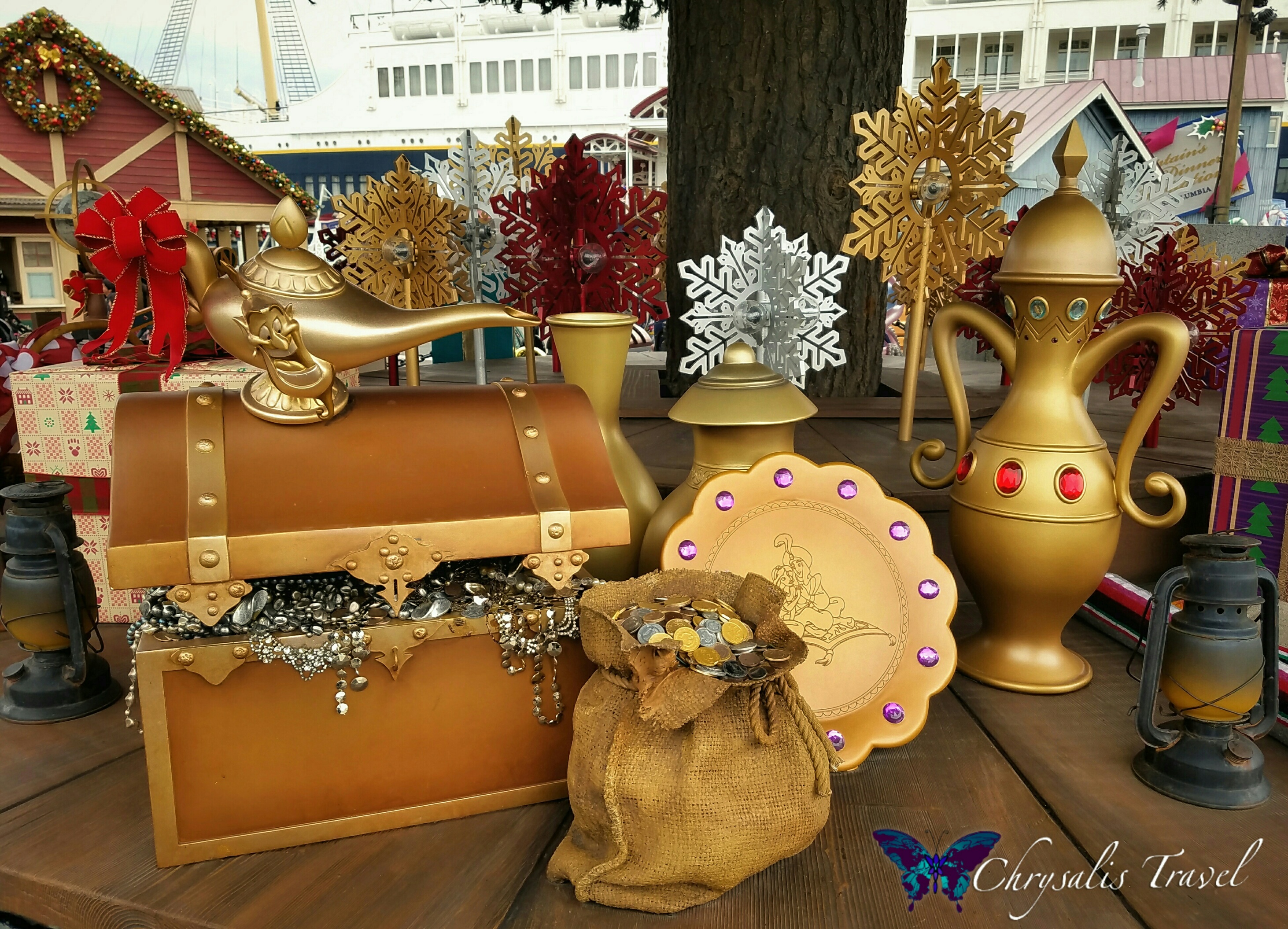 Aladdin, Jasmine, and Sinbad call the Arabian Coast home. Here’s Genie’s lamp and some of Sinbad’s treasure under the tree.