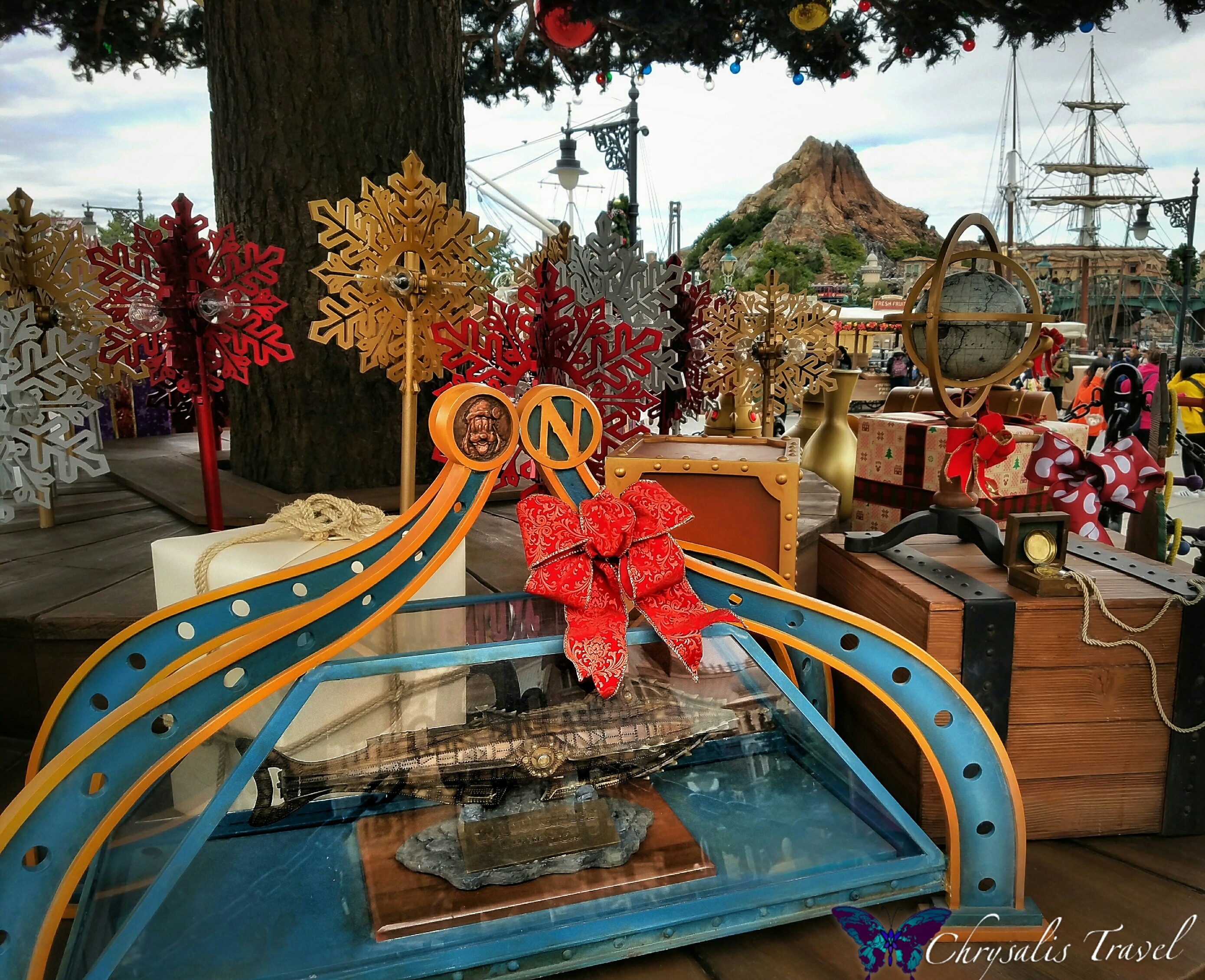 Captain Nemo’s Nautilus is wrapped neatly with a bow under the tree, with Mount Prometheus visible in the background. This gift represents Mysterious Island, the core of Tokyo DisneySea.