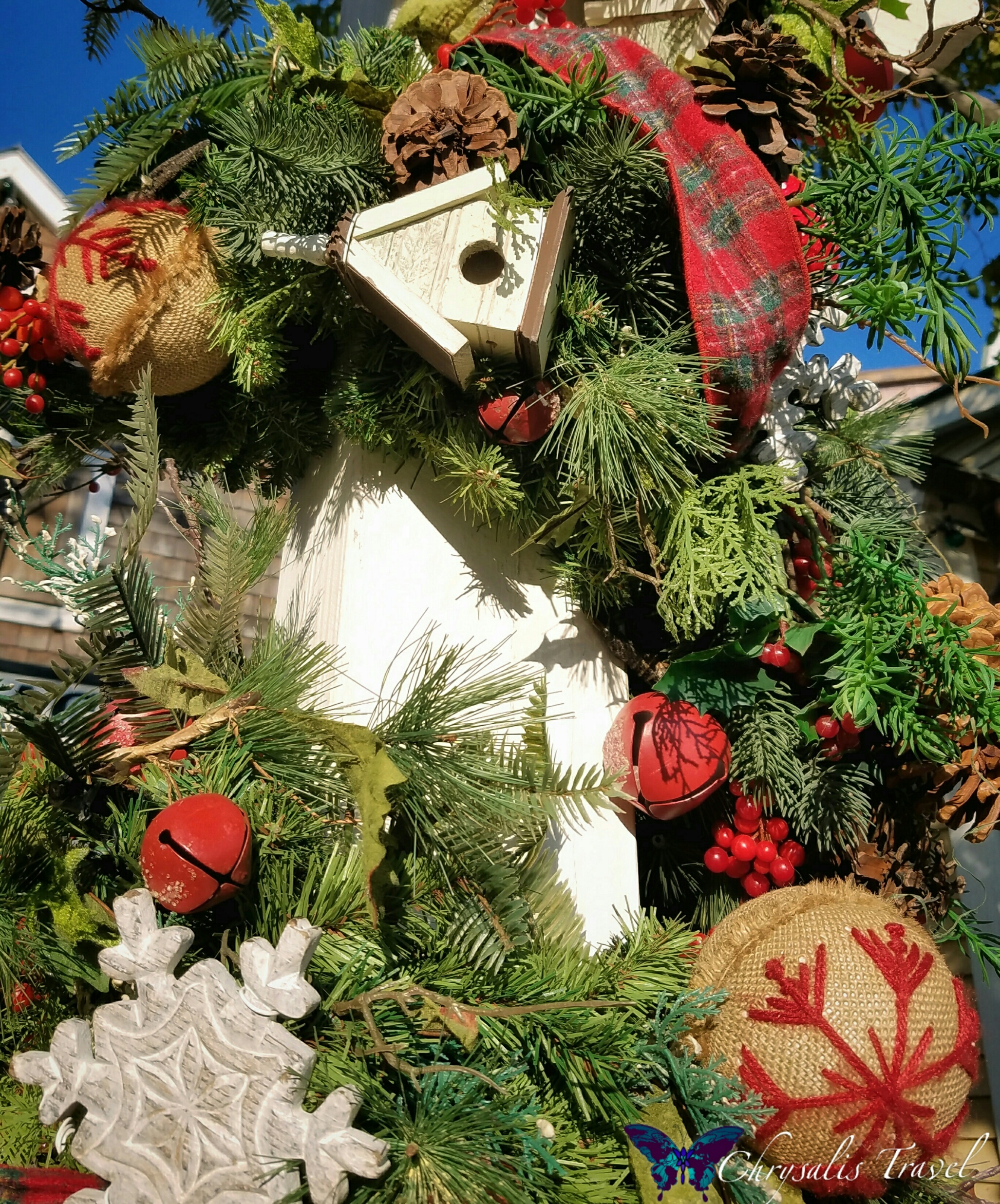 Evergreen garlands are strung along the fence posts, and the pink-ribboned tree greets guests.