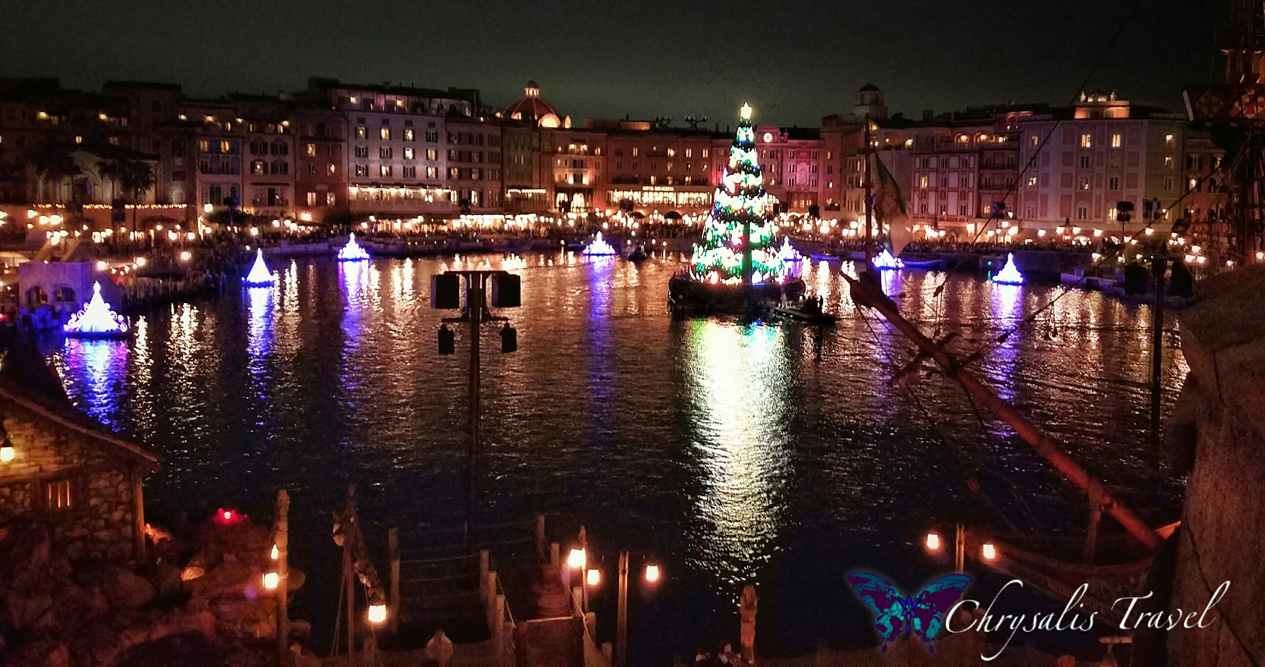 The main shows/parades at Tokyo Disney are centered around the Mediterranean Harbor waterfront. Amazingly, the seasonal celebrations are added in addition to the regularly scheduled daily performances.