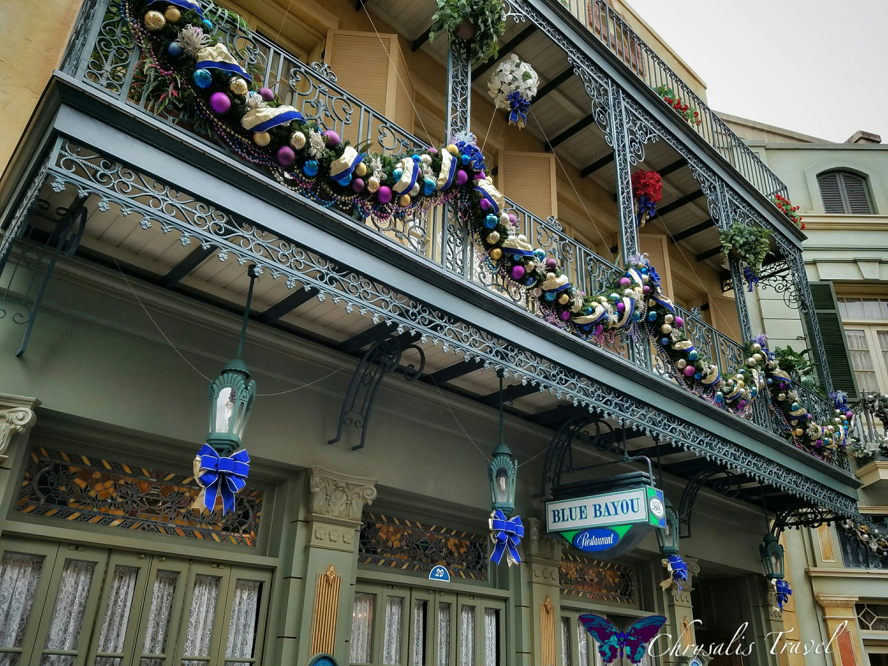 The Blue Bayou is exactly where it should be, around the corner from Pirates. The décor looks remarkably like Disneyland Anaheim’s New Orleans Square during the holidays. Only, Club 33 is above the World Bazaar, and not above Pirates in Tokyo Disneyland.
