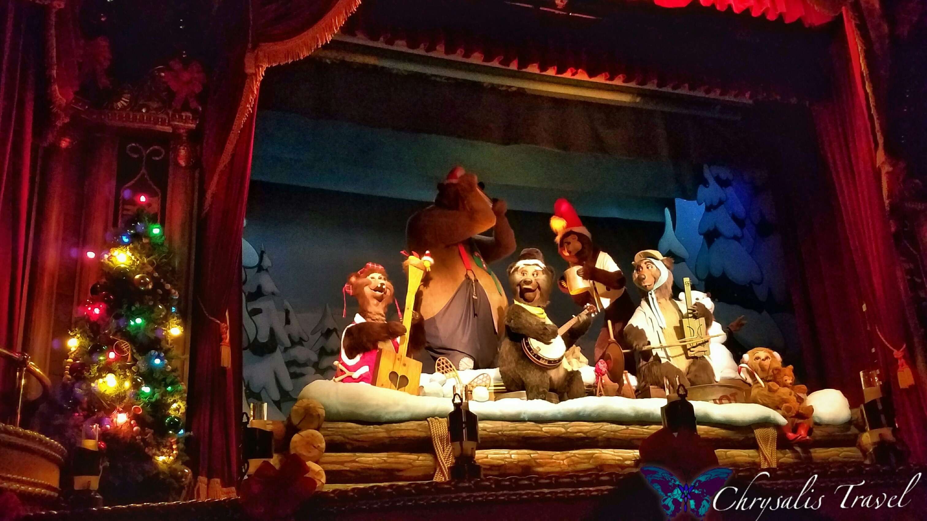 The Country Bears Christmas Special had been a favorite of ours until it closed at Disneyland Anaheim on September 9, 2001. Disney World doesn’t do holiday overlays on their original Country Bears attraction.