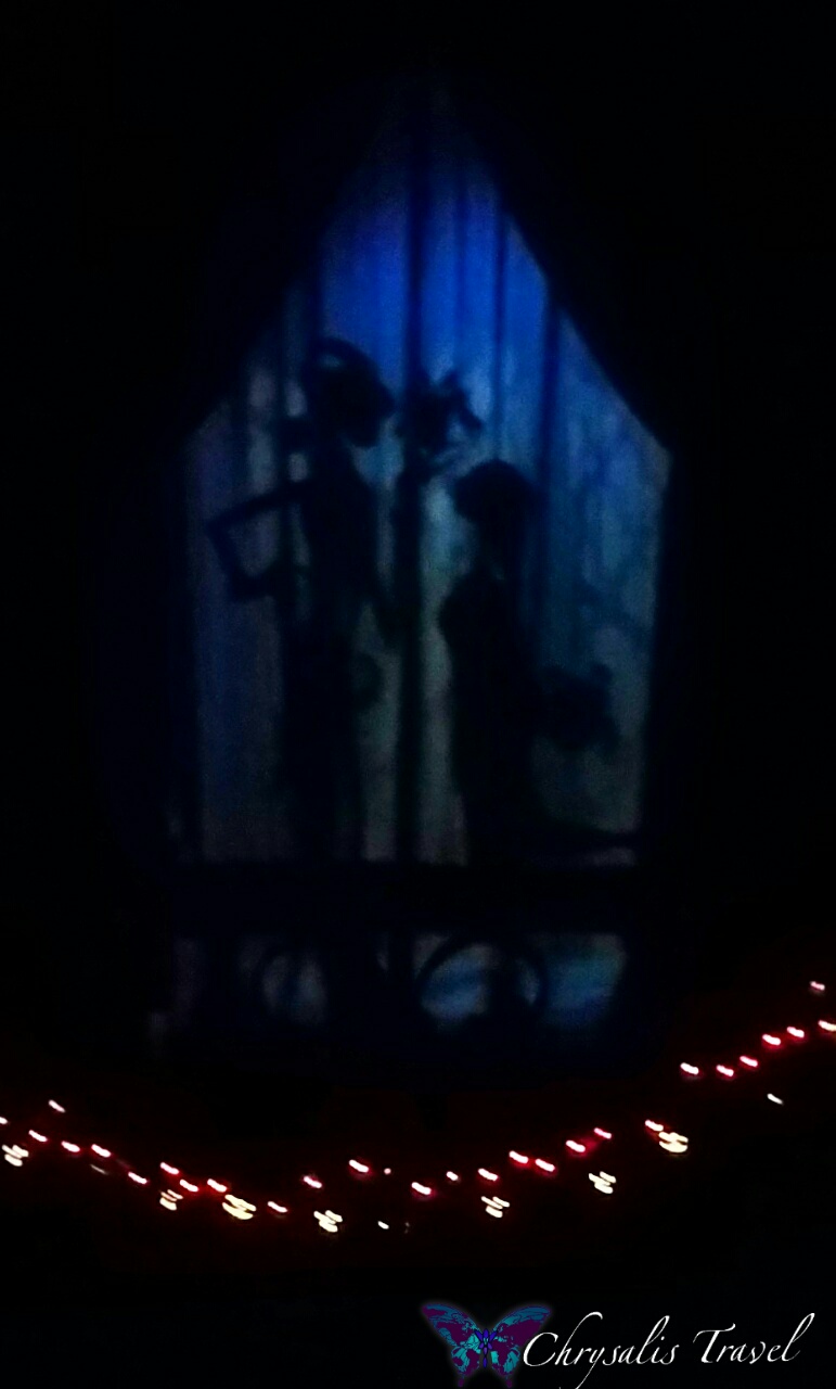 Aside from the Japanese narration in the entry foyer and stretching room, the musical score is in English. See more of our Haunted Mansion Holiday Nightmare review from our Halloween article here.