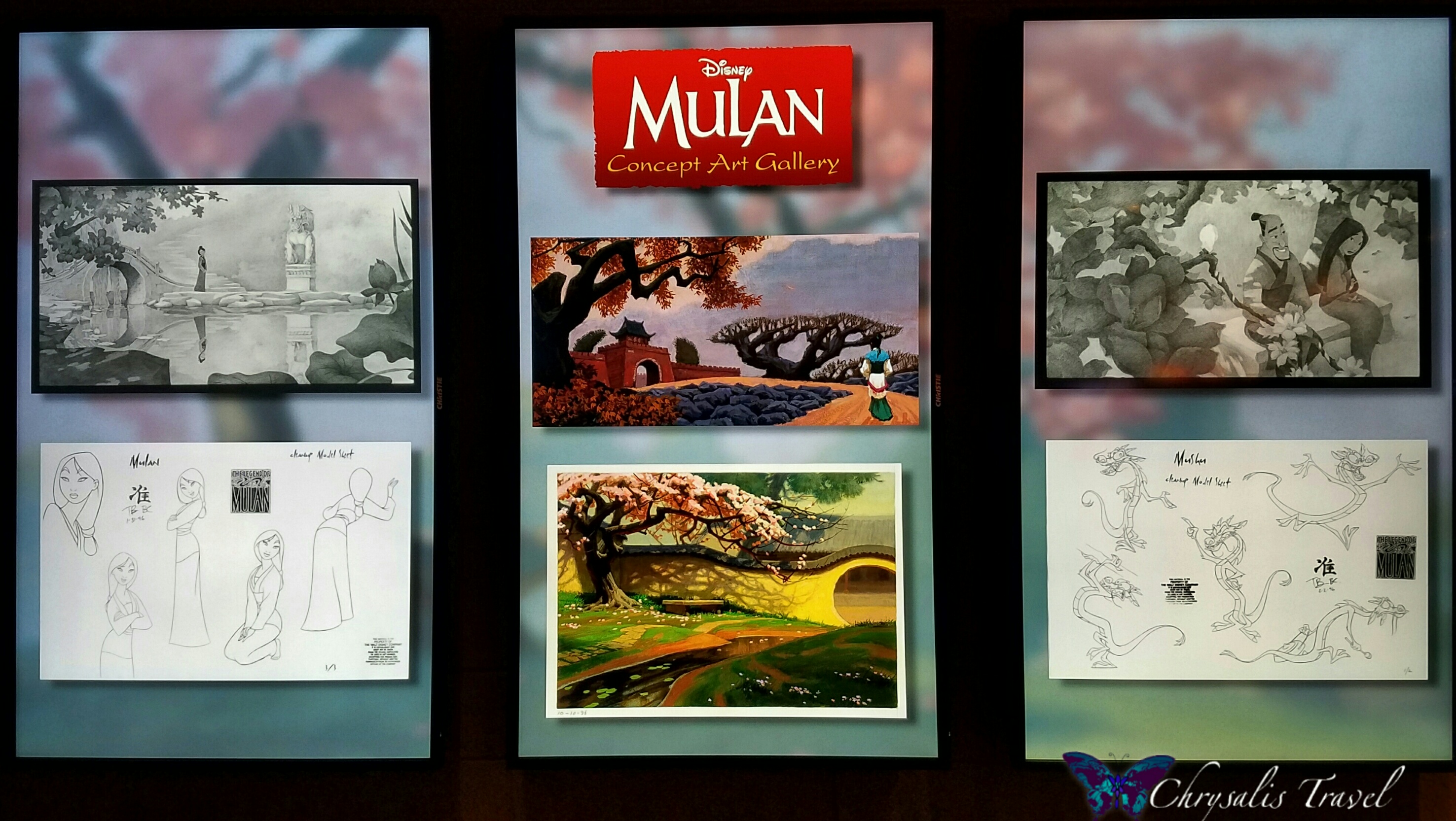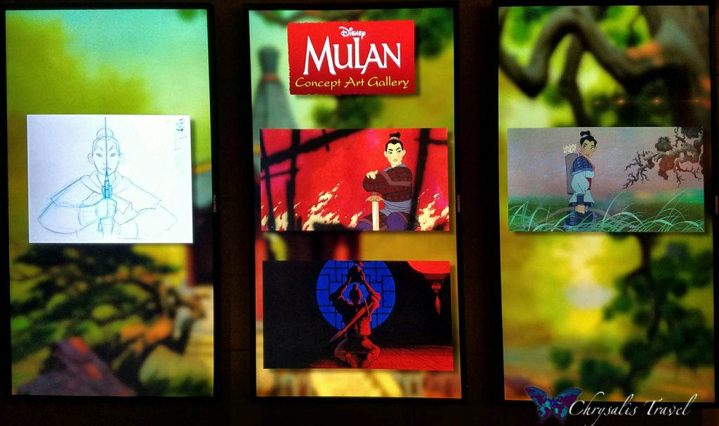 What a treat to be at the El Capitan theater! We were welcomed in the lobby with a digital gallery of Mulan concept art.