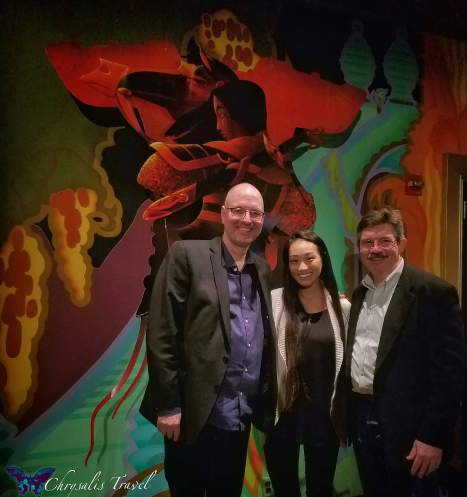 After the screening, all the cast and crew were invited on-stage for a big family reunion photo.The panel members were so kind to stay afterwards to greet guests and take pictures. Here, Tony Bancroft and Mark Henn meet with Kayla Oh, a friend of Mulan in Orlando.