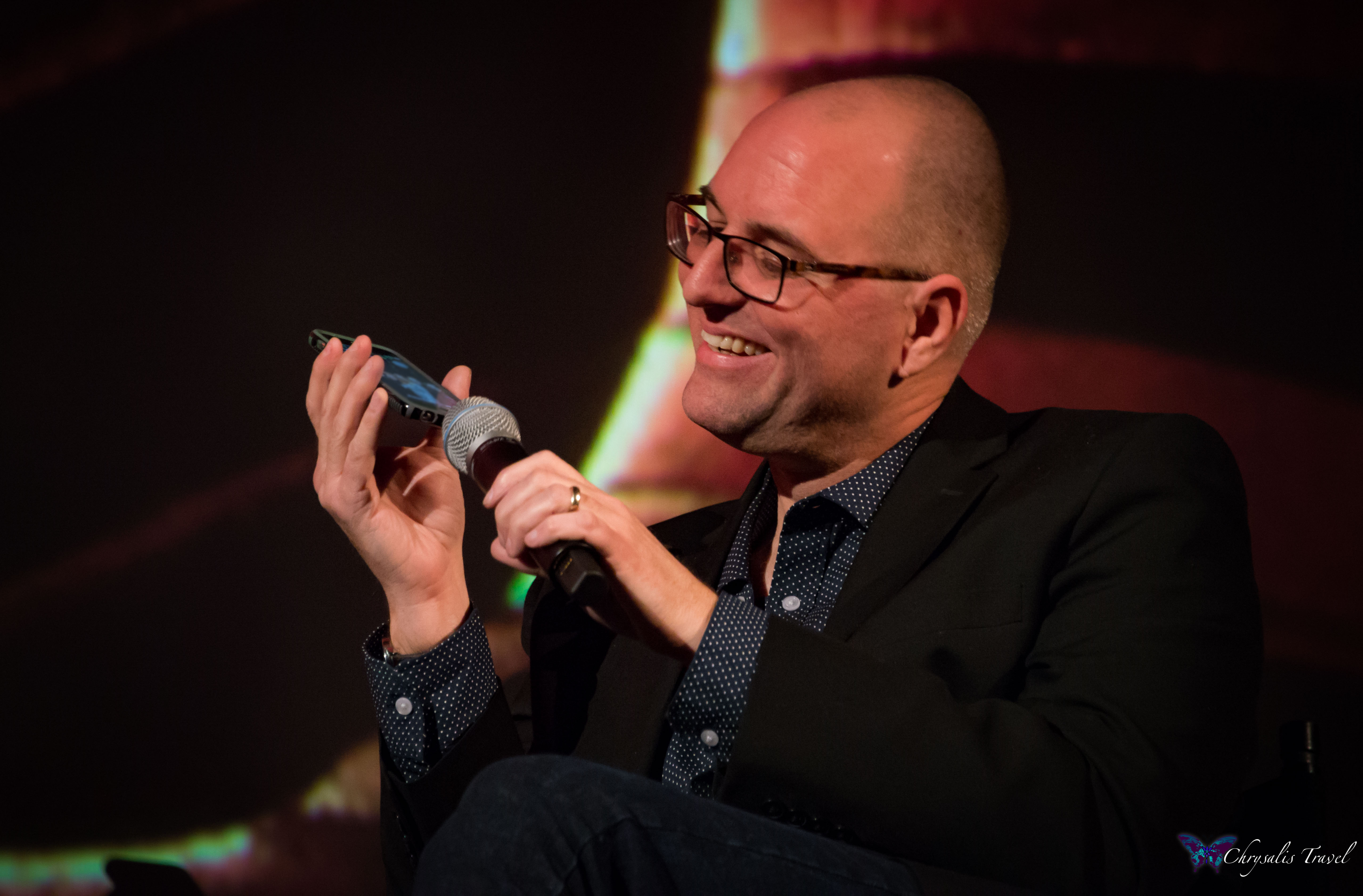 Tony Bancroft (co-director, Mulan, supervising animator for Pumbaa, Lion King, and co-host of The Bancroft Brothers Animation Podcast) came on stage to introduce his fellow panelists: