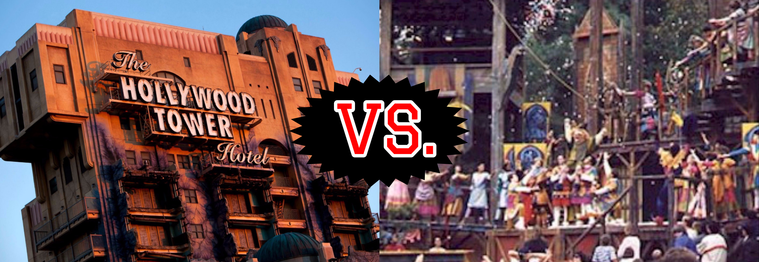 Today finds Disney California Adventure's Tower of Terror up against Disneyland's Festival of Fools show. Will Quasi make a fool of his second gate foe or will Tower be the Festival's downfall? Vote now: