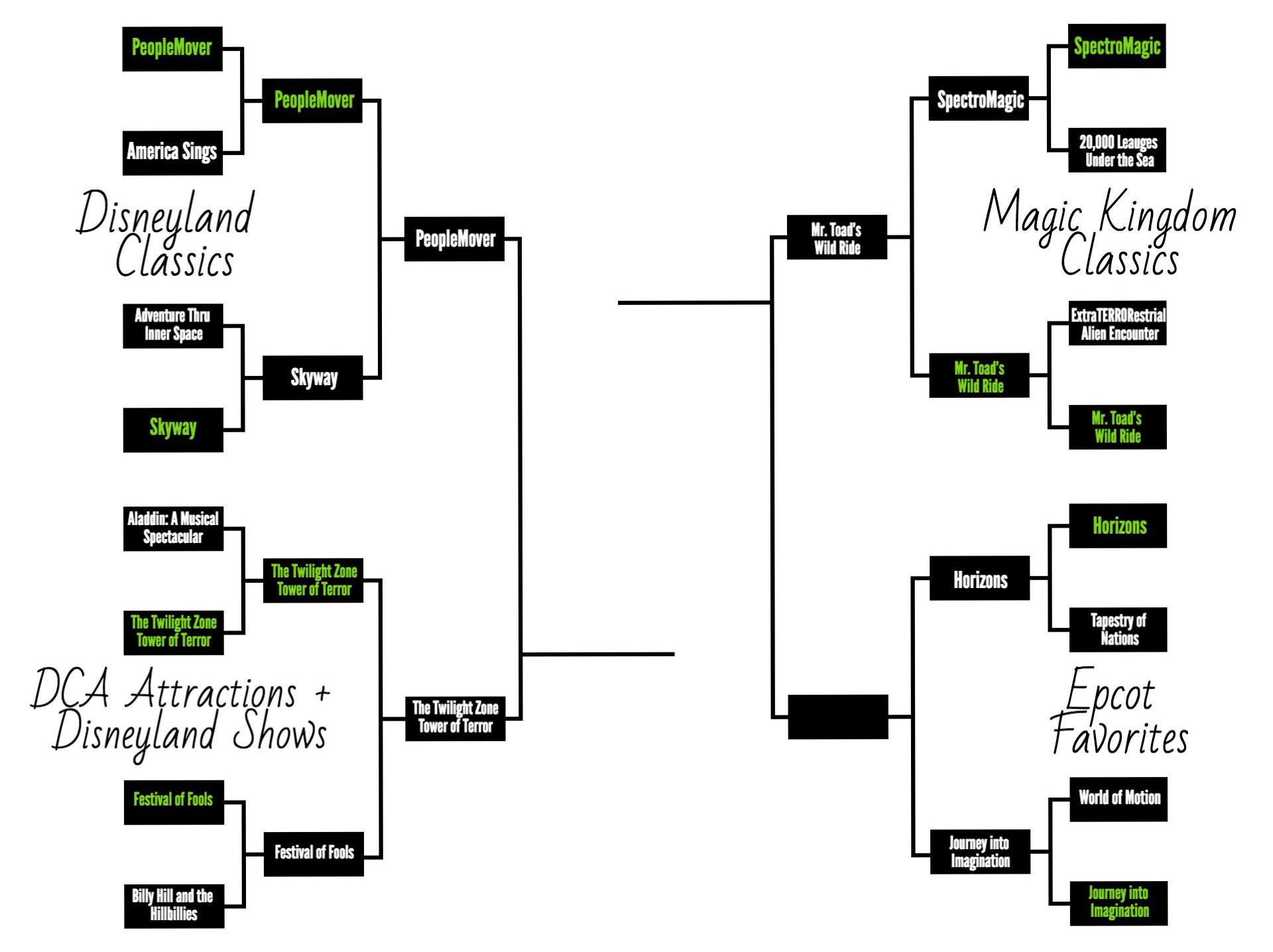 Be sure to come back tomorrow as we reveal the winner of today's poll and continue onward through our bracket to crown an extinct Disney attraction champion!
