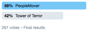 In yesterday's semi-finals match-up, Disneyland's PeopleMover defeated DCA's Tower of Terror and will represent the West Coast in the finals:
