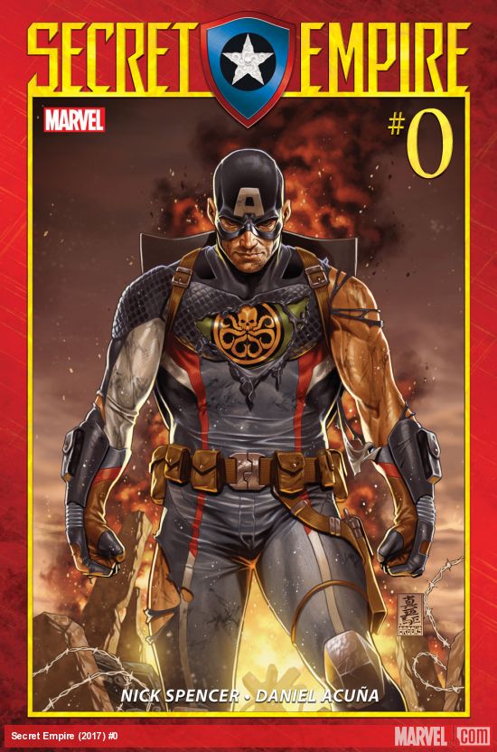 But the Captain America that dominates every panel of Secret Empire #0 is not the Captain America that we know, love, and idealize. From word choice to how he is drawn, the man behind the mask is obscured. We never see his whole face, or when we do get a full profile of Cap, his colors are filled with small shades of black and grey. Credits to Daniel Acuna and Rod Reis for the work on the artistry behind the book and making a popular character like Captain America show a new side.