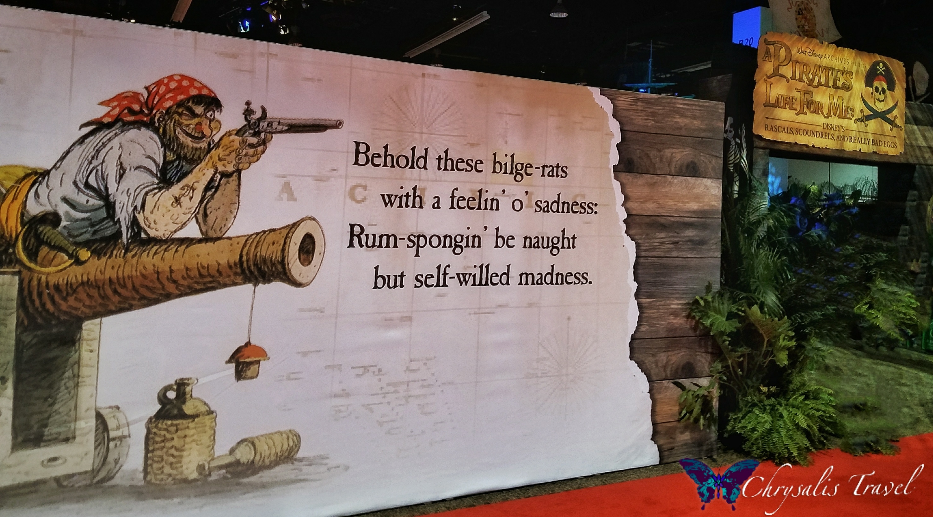 The queues snaked on and on for this exhibit. The mood was set with music of Disney’s pirates – from X Atencio’s classic ‘Yo Ho! Yo Ho!’ to the Hans Zimmer film soundtracks, to songs from Muppet Treasure Island and Hook’s solo “Revenge! Revenge!” from Once Upon a Time.