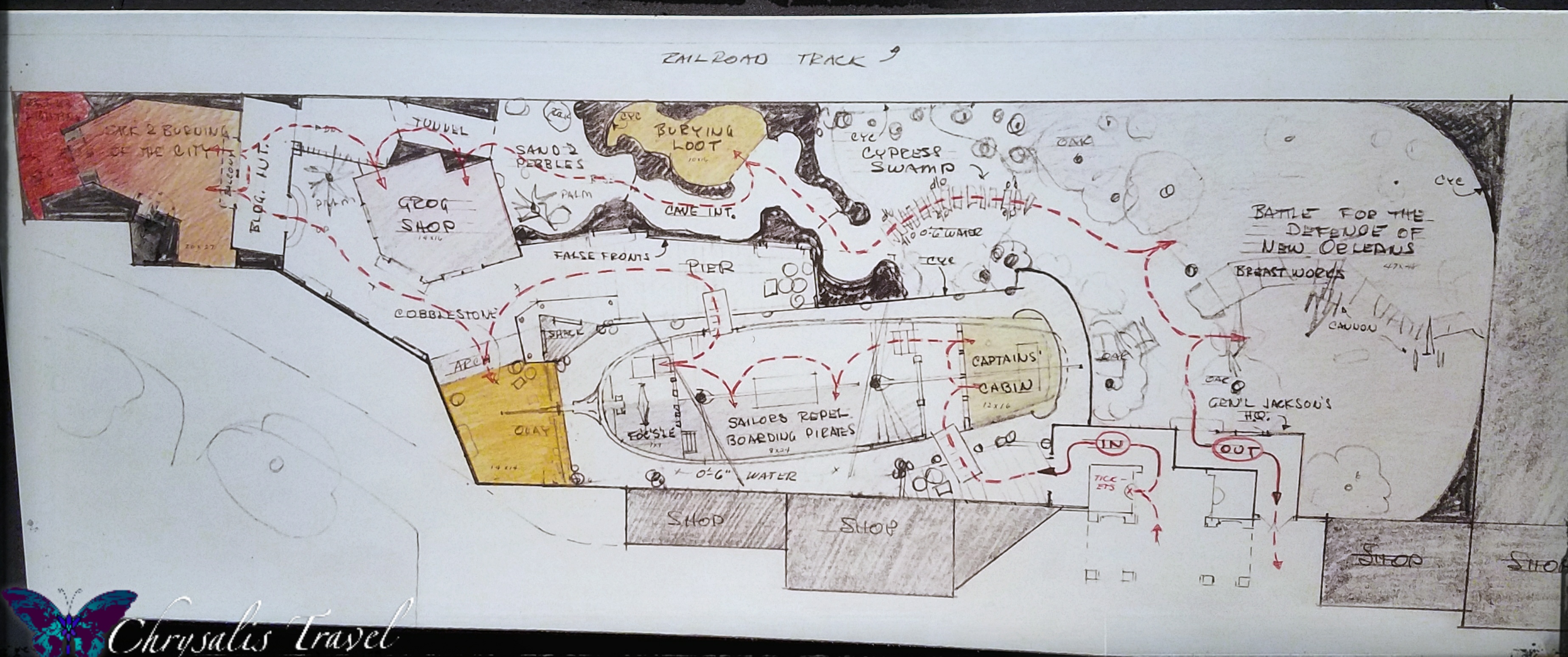 When it came to developing a new attraction for Disneyland, pirates were a natural theme to explore. The original proposal circa 1963 was for a ‘Pirate Wax Museum’ walk-through attraction.Guests would wander through various pirate-themed rooms, including a battle scene and pirate ship.