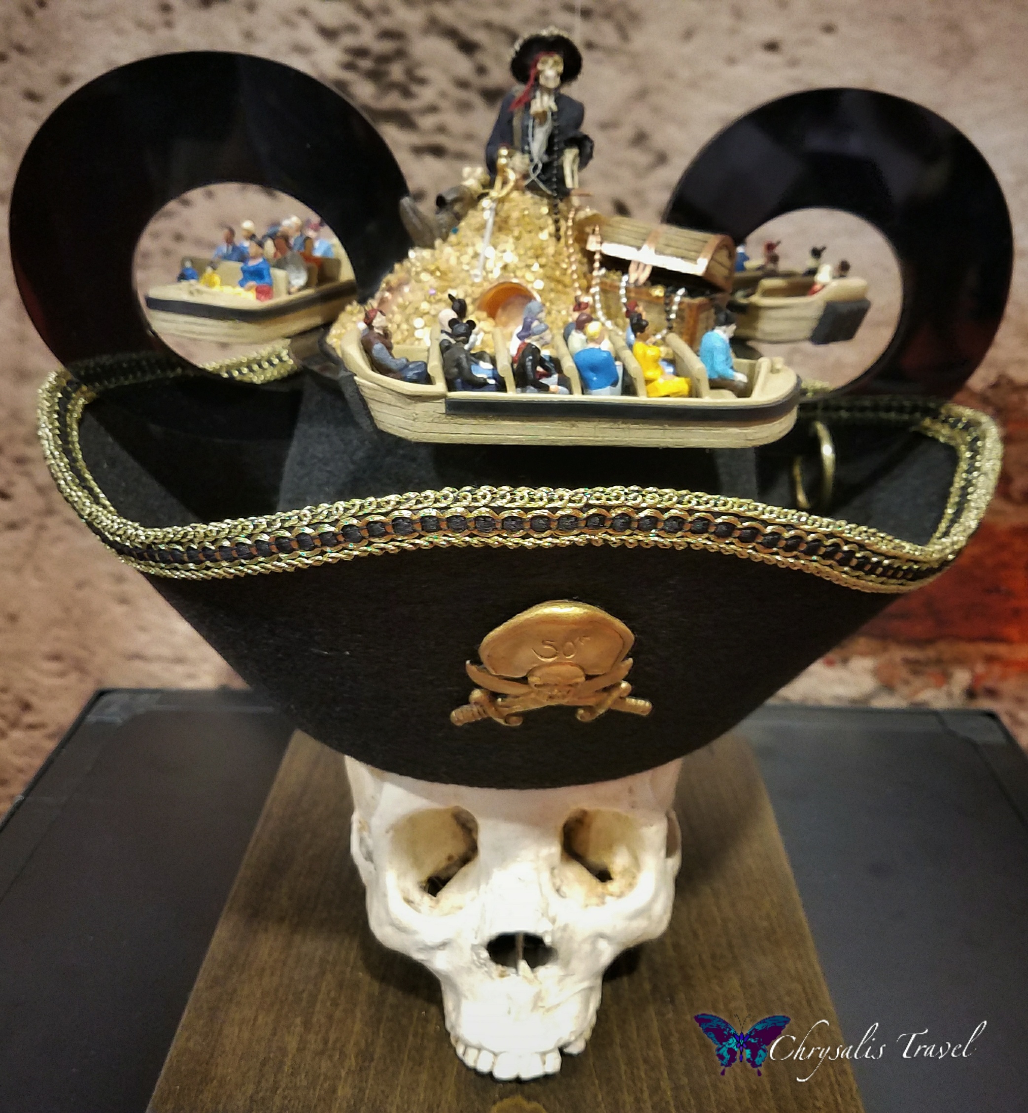 The winner of the Design Challenge was this pirate Mickey Ears hat. Three ride vehicles circle through the Mickey ears on a re-purposed snow globe mechanism that does not require electricity.