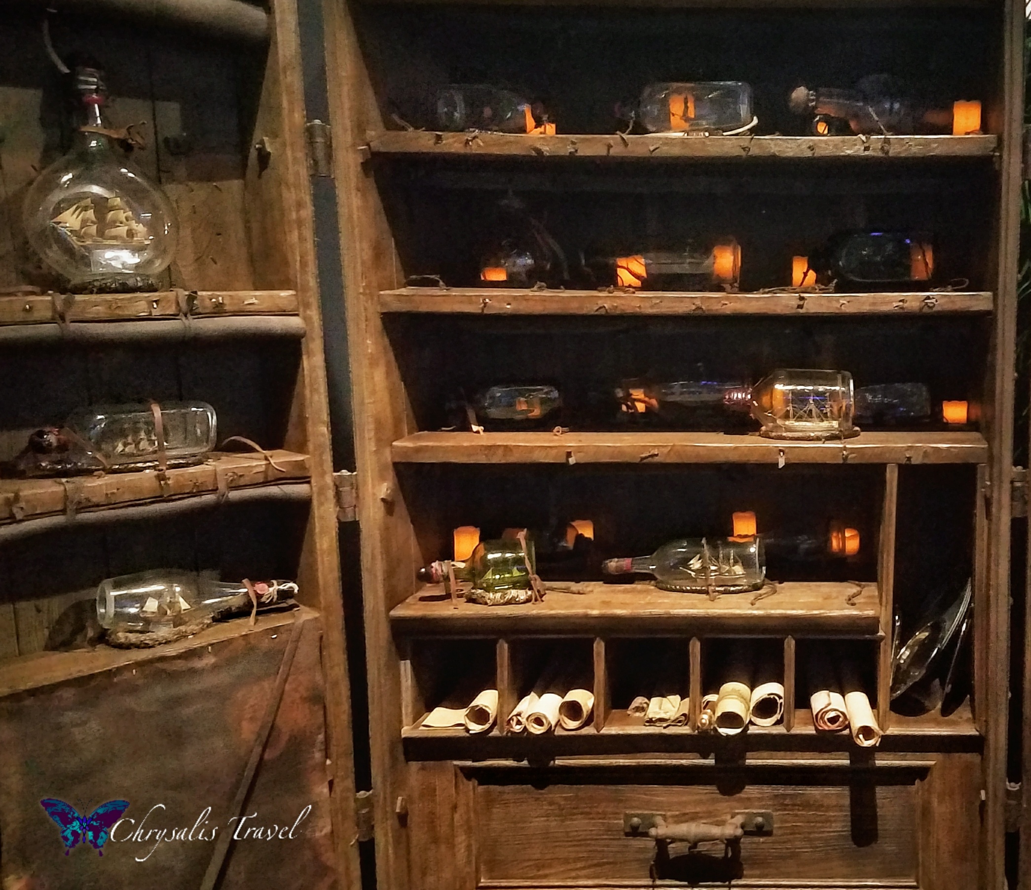 Who loved the ships in bottles? There was a huge wardrobe lined with them. Alas, they didn’t magically float on moving water.