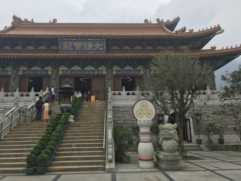 The cable car dropped us off Ngong Ping village which featured the other attractions on our ticket, gift shops, restaurants, and a 7-Eleven. Our first stop was Stage 360 where stunt performers recreated action sequences fron Hong Kong action movies. It was neat to see them do the wire work. We then went to Motion 360 which was a small simulator experience. The show, "Discover Lantau," showed us the highlights of this section of Hong Kong, complete with in-theater effects which made you appreciate the pacing of Disney experiences. I do not know why both experiences were called 360, as they were not experiences that surround you. That being said, there was a charm in their quaintness.