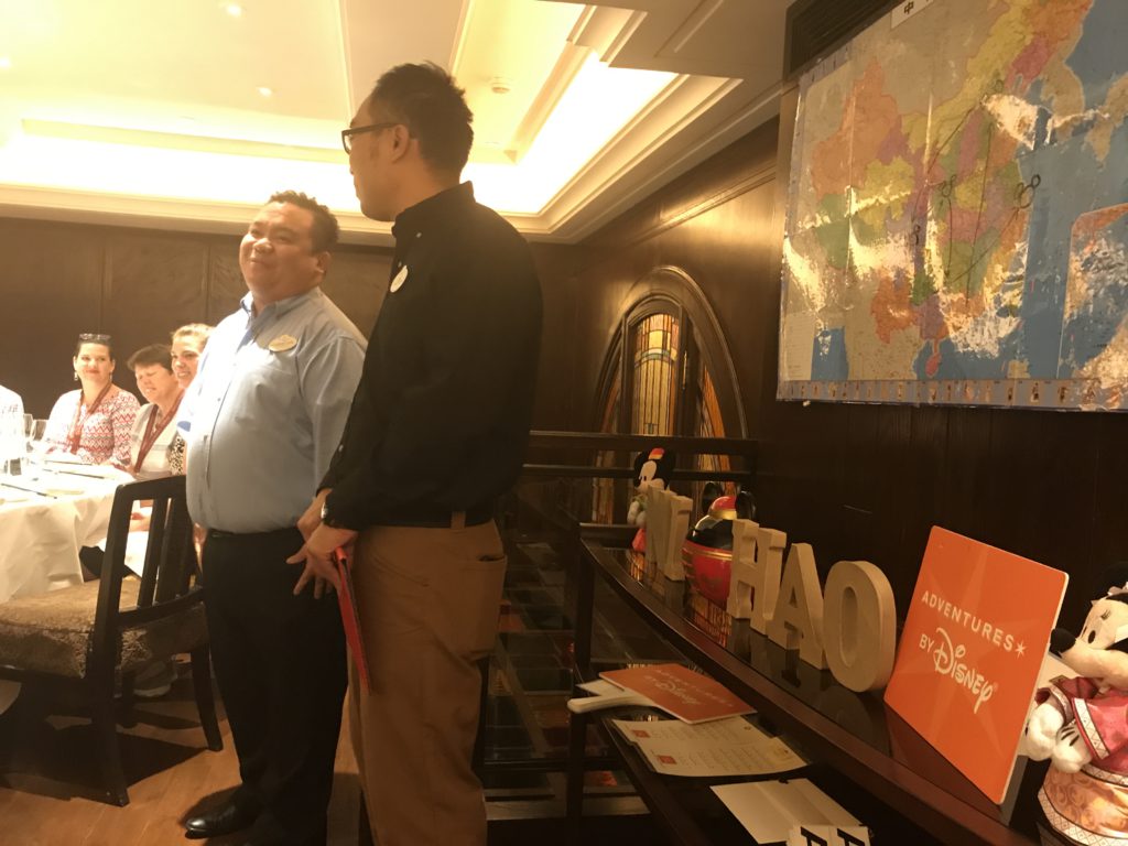 Before dessert, the guides went through some of the logistics of the next day. We were informed that the planned Star Ferry ride would not be able to occur due to some maintenance. While Christian seemed a bit timid to reveal this, the group was excited about the prospect of having more time at Hong Kong Disneyland instead. After recognizing Adventure Insiders with special pins showcasing how many previous adventures they had completed, we recognized a pair of birthdays with traditional Chinese birthday buns. Then it was dessert time. Along with our dessert came our first "pin of the day." The pin features the greeting "Nimen Hao" along with Mickey in traditional Chinese attire. We were informed that we would be able to enjoy breakfast starting at 7 am before meeting as a group at 8:30 for our day in Hong Kong. We then retired to our room to get some rest.