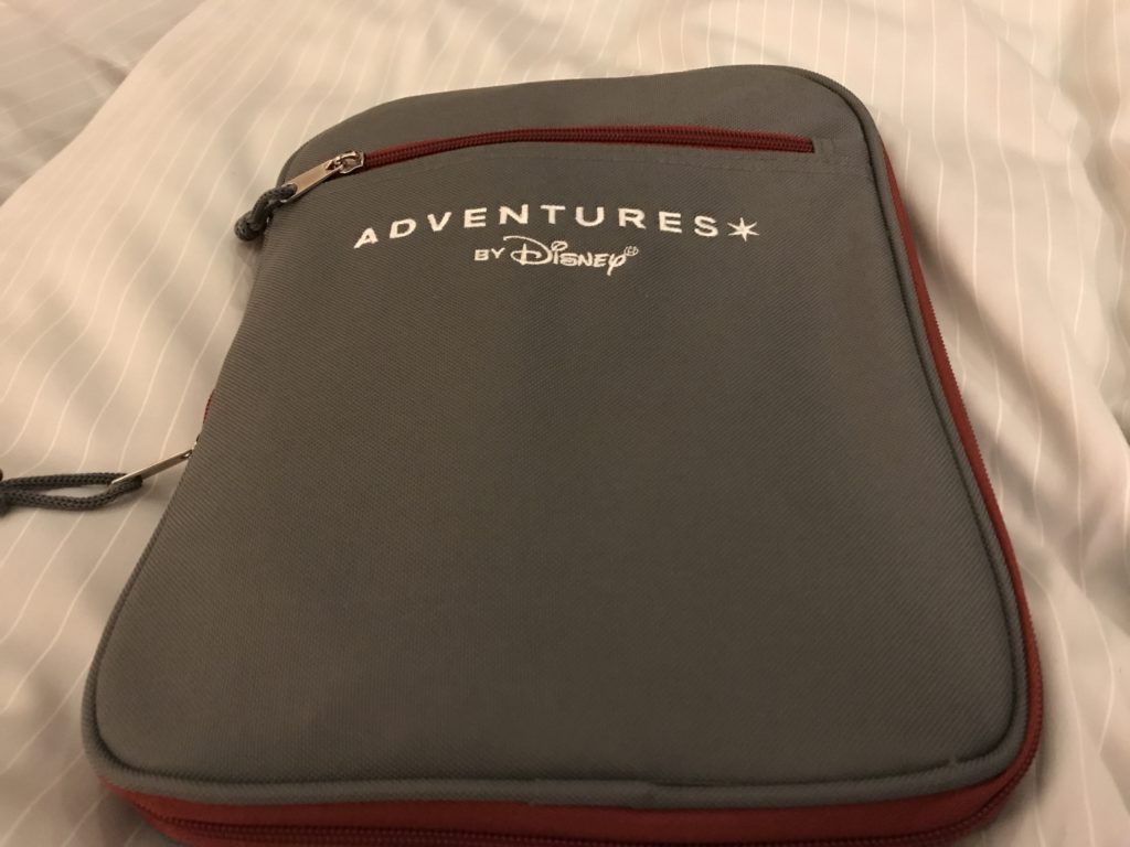 Sometimes "historic" is used as a euphemism for "out of date." That can't be said here. There are several tablets that control everything in the room from lights to the curtains and the TV. There are also more plugs and charging stations than you could imagine. In the room, there was a fruit plate which came with a little booklet that explained what the Chinese fruit was as well as how to eat it. There was also a gorgeous red box that featured soap inside. We have since been informed that it is ours to keep. And finally from Disney was our Adventures by Disney duffel bag, complete with two emergency rain ponchos, and our welcome letter that informed us that we could meet our Adventure guides between 9 and noon tomorrow.