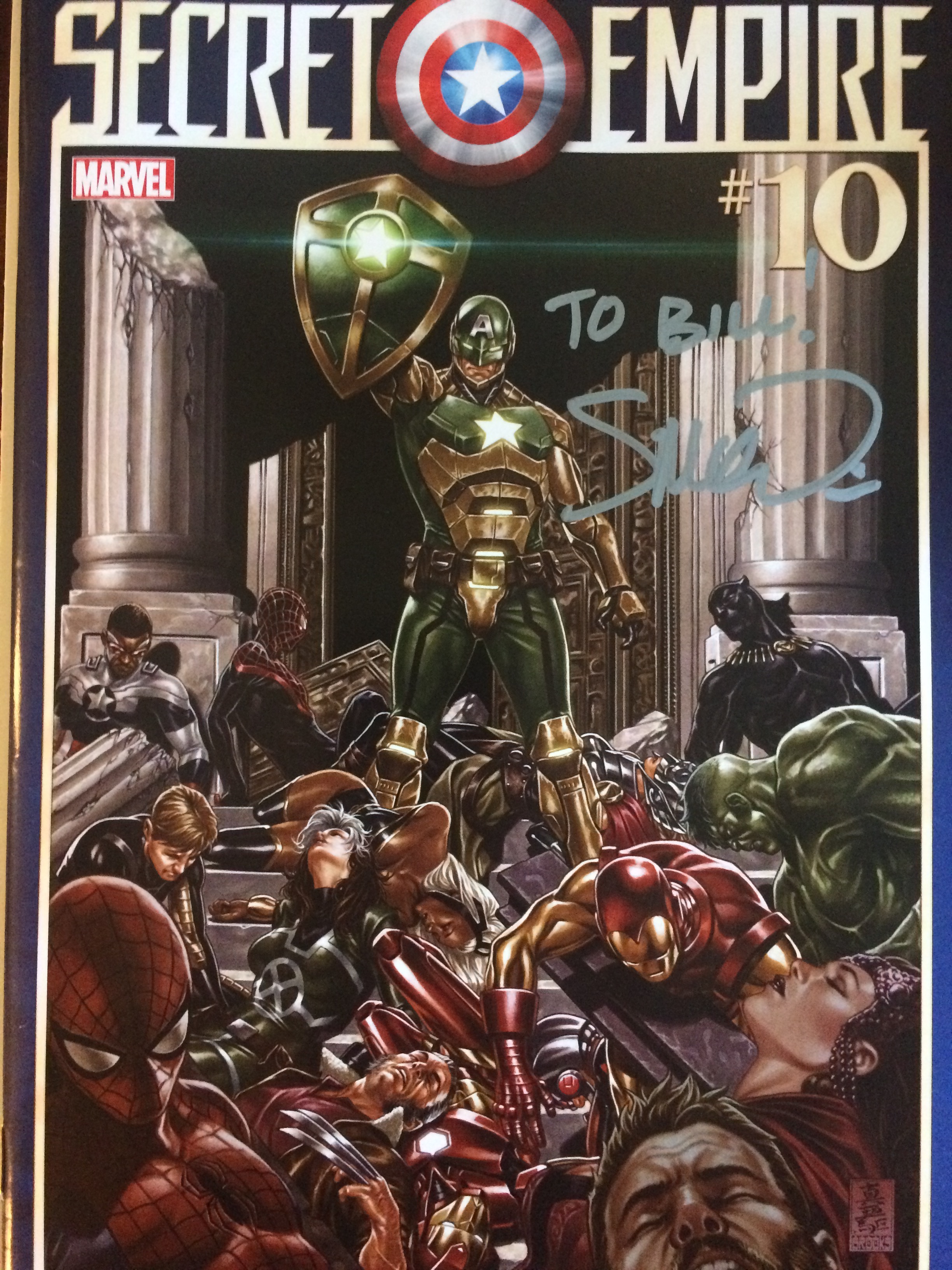 As these thoughts were racing through my head the line moved up, and before I knew it I was standing in front of McNiven but I didn’t have anything for him to sign. Crisis averted because there is always something for sale at pop culture conventions. So I asked for Secret Empire #10 and for Steve to make it out to me (incidentally, I had just completed the review for Secret Empire #10 the Wednesday before).