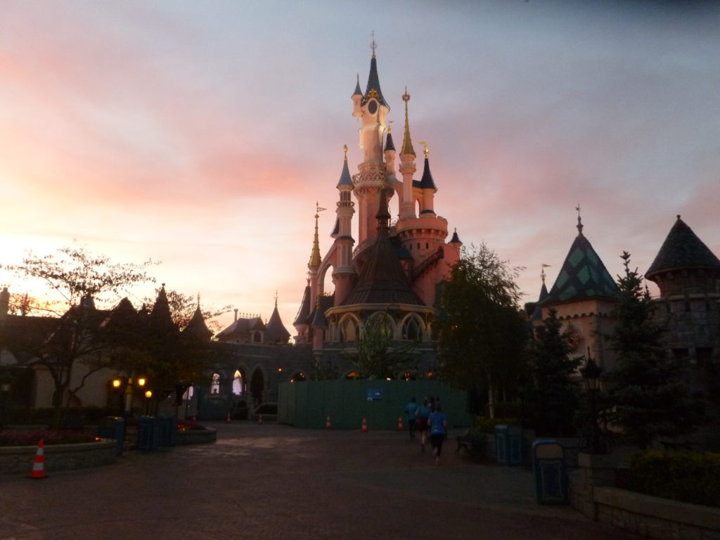 With another chilly early-morning walk to the corrals, we found ourselves at the very front of our corral through a quirk in the arrival process. After the requisite pre-race entertainment and announcements, we were off. The huge amount of in-park time at the start of the race was a lot of fun, with enthusiastic Cast Members cheering runners on; unlike at U.S. events, where Cast Members often seem like they're phoning it if, the races in Paris are rare enough that the excitement seemed genuine and infectious. Another benefit of the early miles was getting to see the parks come alive as the sun began to rise. With roughly 2/3 of the total race distance on Disney property, the course is one of the most scenic and interesting I’ve run anywhere.