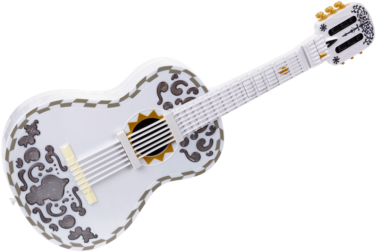 Fans of Coco can recreate music from the movie with this interactive guitar that allows budding musicians to learn and practice, “Remember Me,” from the film through fully functioning strings, working lights and true-to-movie details. This guitar is topped by a skull that chomps when the first chord button is pressed and also comes with sheet music for kids to practice the day away and become a musician just like Miguel dreams of becoming. 3 “AA” batteries required (included). Ages 3 years and up.
