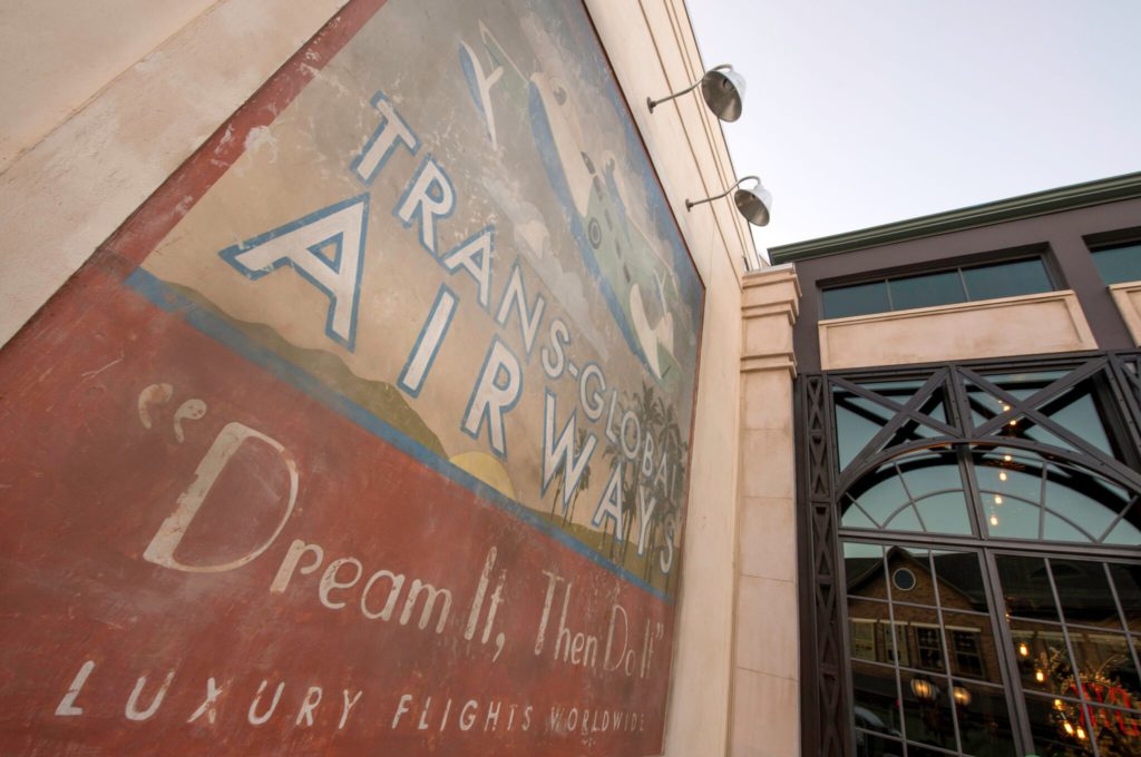 First lets start, as all good Disney locations do, with a bit of a backstory. Lake Buena Vista was home to the beautiful Trans-Global Airways Air Terminal, with a beautiful art-deco air terminal welcoming travelers from all over the world. The terminal was home to a small bakery run by two Italian immigrants, Maria & Enzo. But as the terminal fell on hard times and closed its doors to air travel, the couple decided to purchase the entire building and converted it into an upscale dining location.