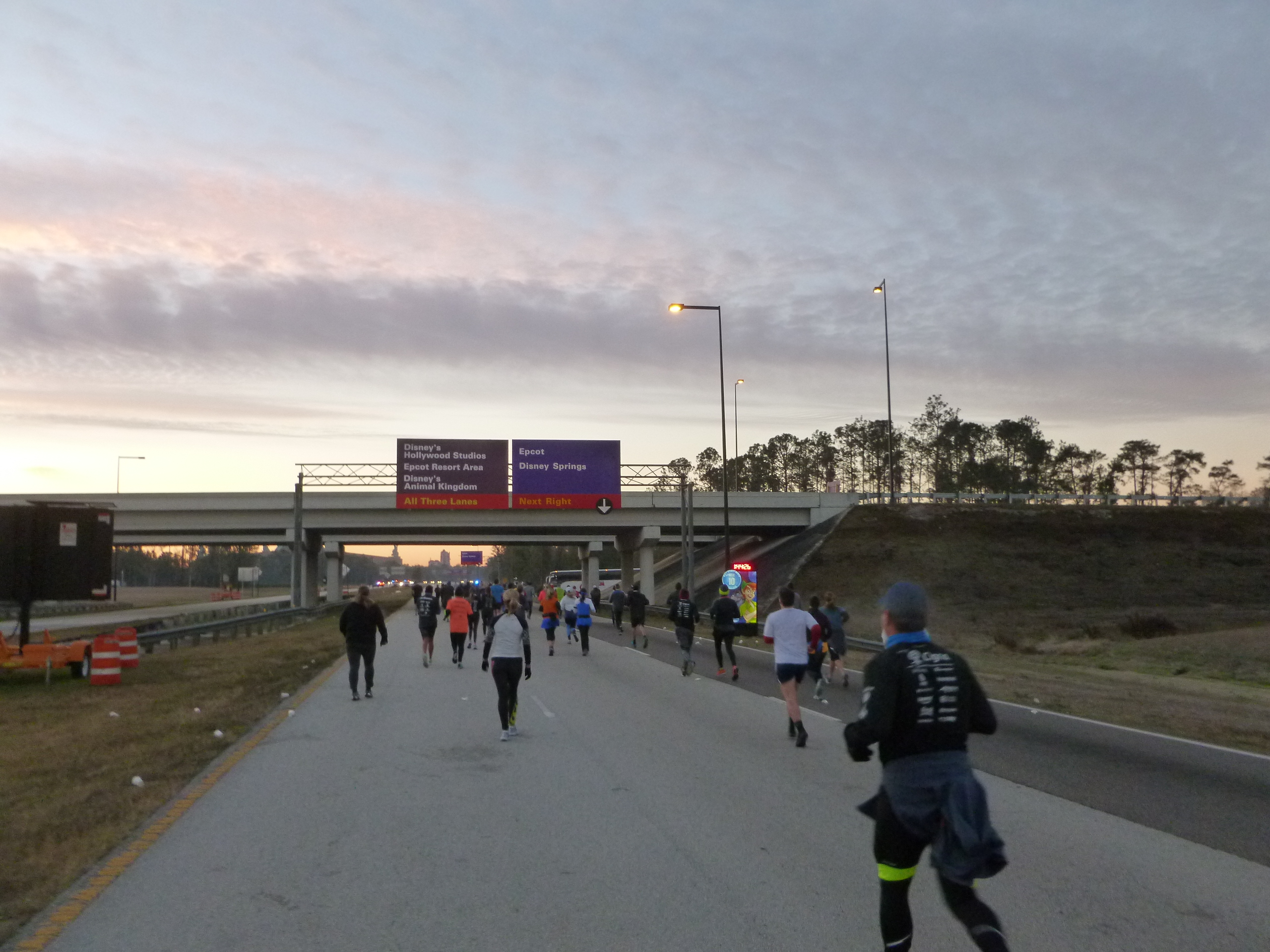 I've always claimed that running Goofy or Dopey actually makes pacing the Marathon easier, since you're starting on sore legs and can't really go too fast in the early miles. With long days of tense muscles trying to stay warm in the parks, I was sore all over by Sunday morning, but my legs felt relatively fresh. Several times in the first few miles I had to do a reality check and remind myself to slow down, to ensure I wasn't spending too much energy early on. As a rule, I like to divide a marathon into thirds: going a little slow for the first 10 miles, at a comfortable pace for the middle 10, and giving it everything I've got for the final 10K. And yes, from a pacing standpoint, I consider the final 10K to be a third of the race, since the fatigue and stress make it even more challenging than either 10-mile segment that proceeds it.