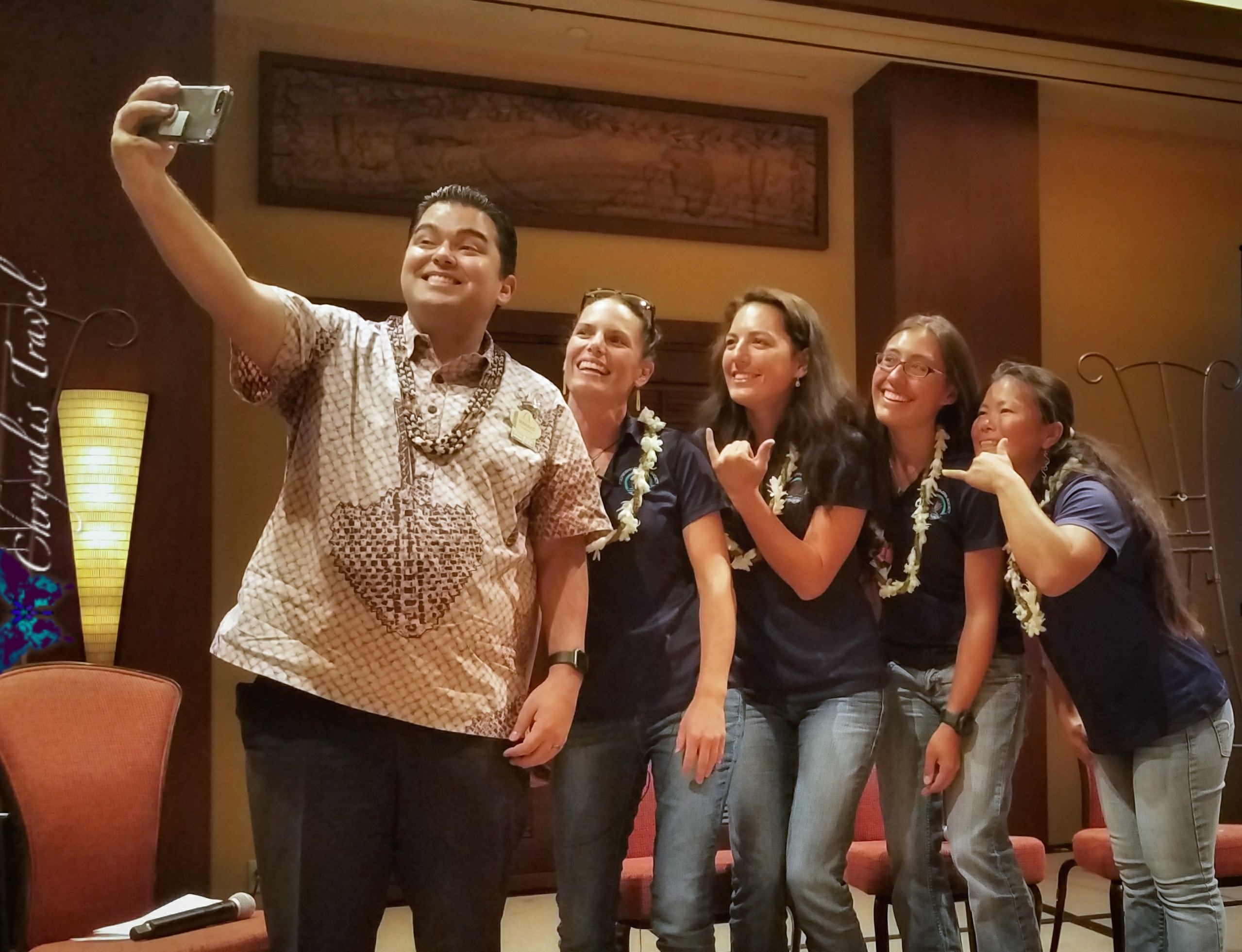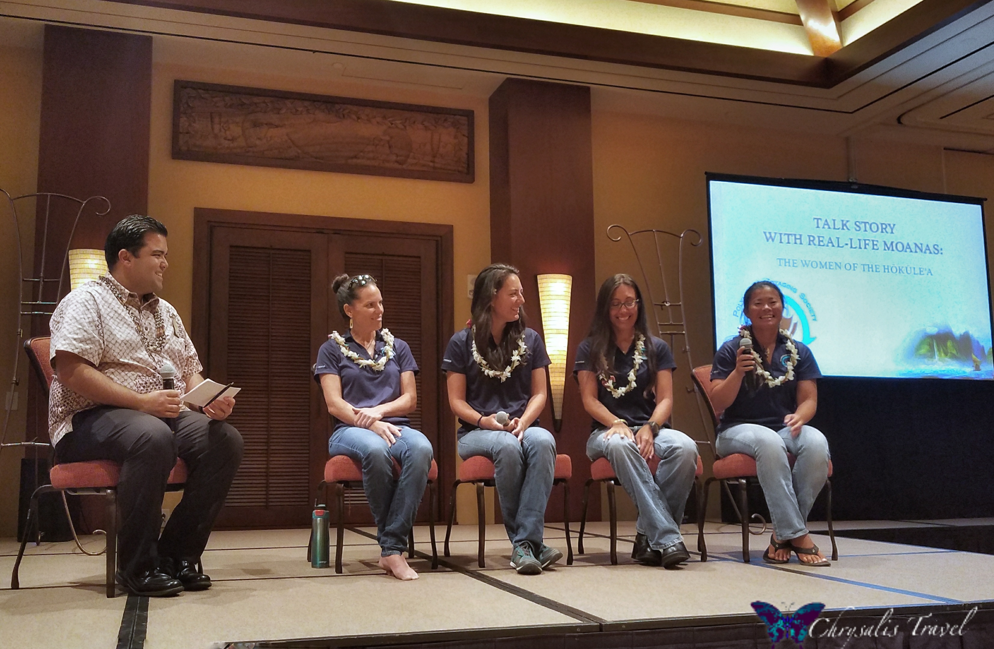 Disney’s Aulani Resort hosted a ‘talk story’ session with four female crew members of Hōkūleʻa on January 4, 2018. We were pleased to meet (from left):- the host, 2017-2018 Aulani Ambassador, Manako Tanaka