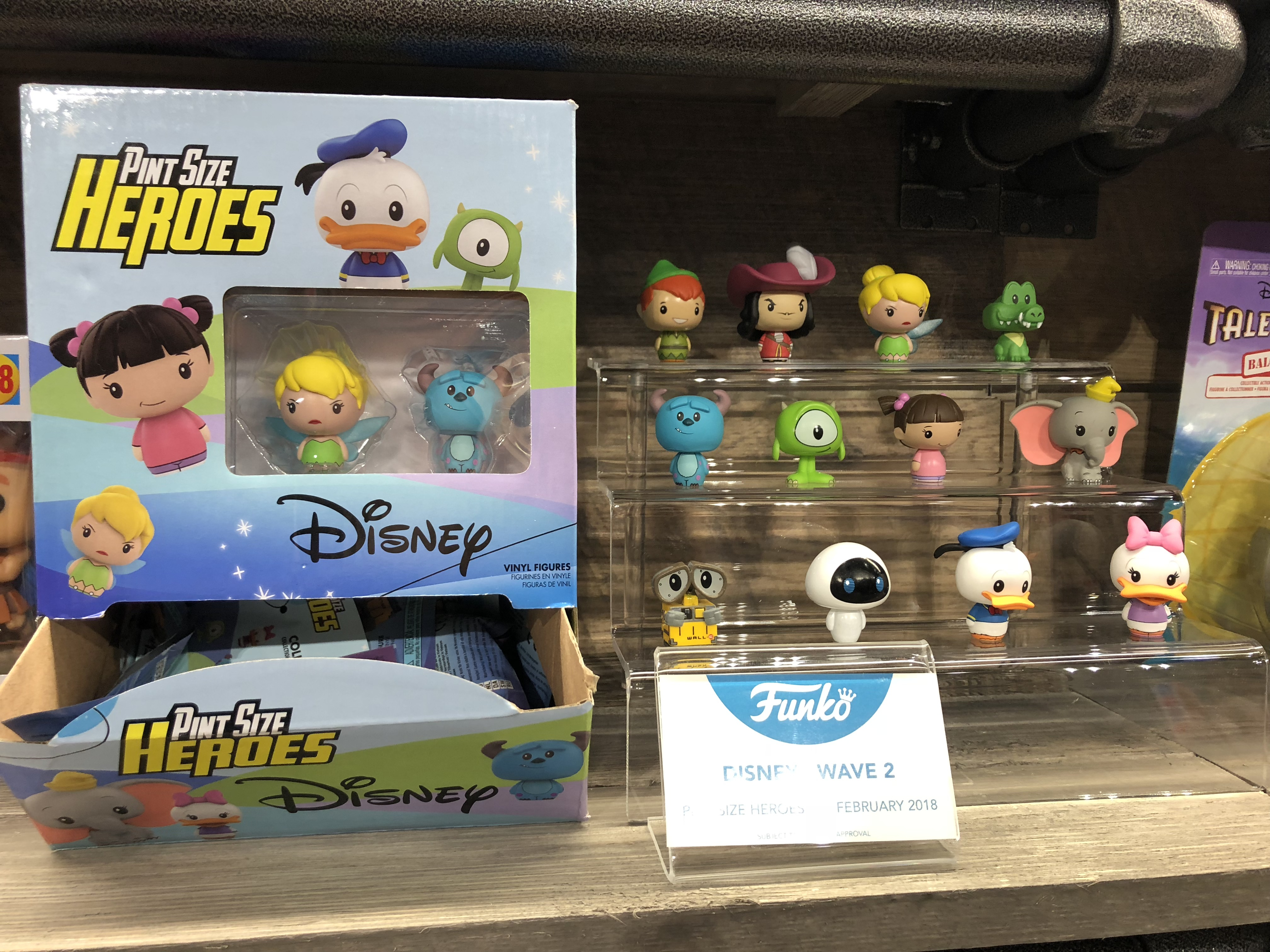 Pint Size Heroes Disney Wave 2 of blind bag mystery figures features Peter Pan, Captain Hook, Tinker Bell, Tick Tock, Scully, Mike Wazowski, Boo, Dumbo, WALL-E, EVE, Donald Duck, and Daisy.