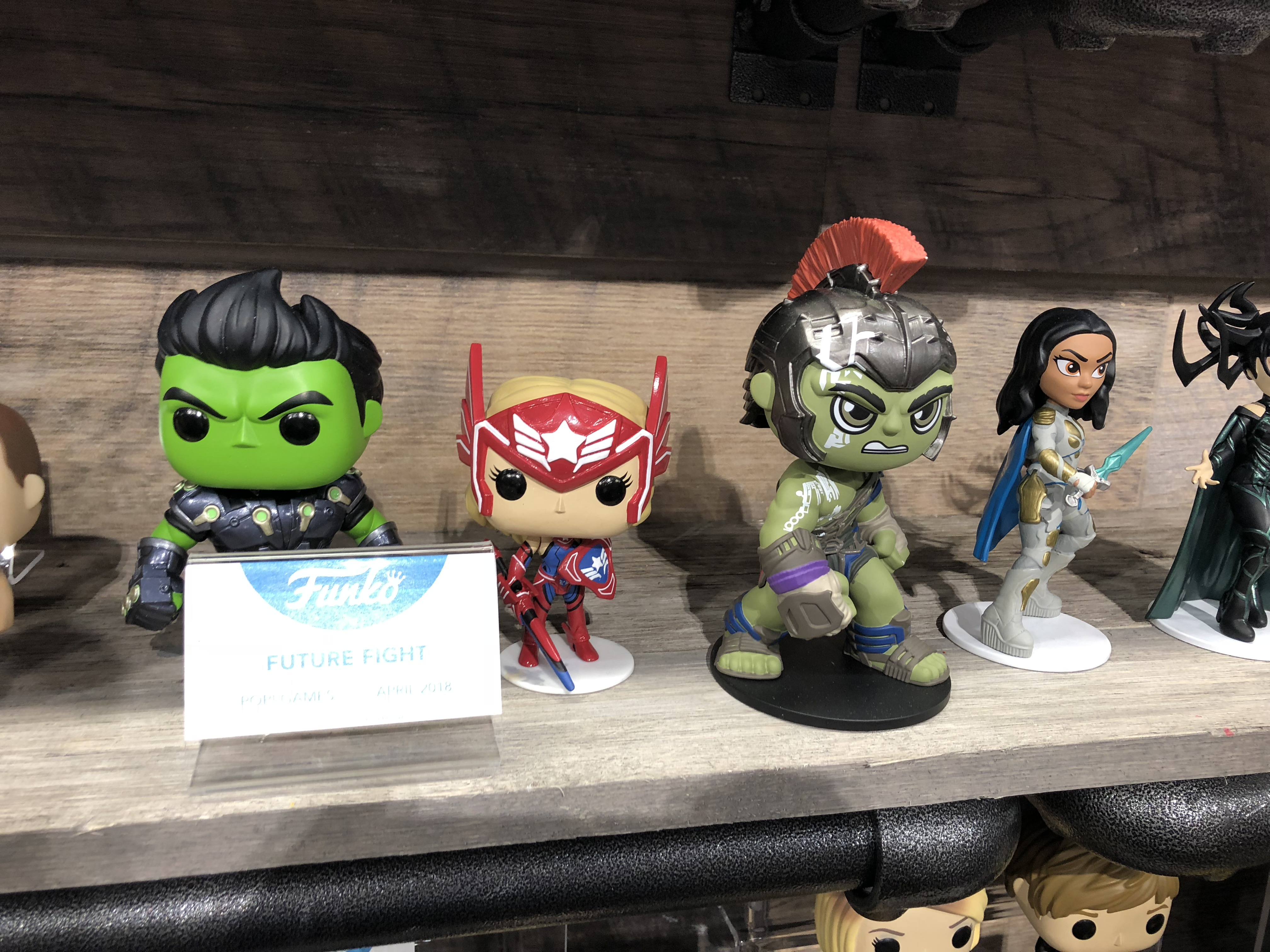 Marvel Future Fight Pop! Vinyls feature two versions of Hulk and Captain Marvel.