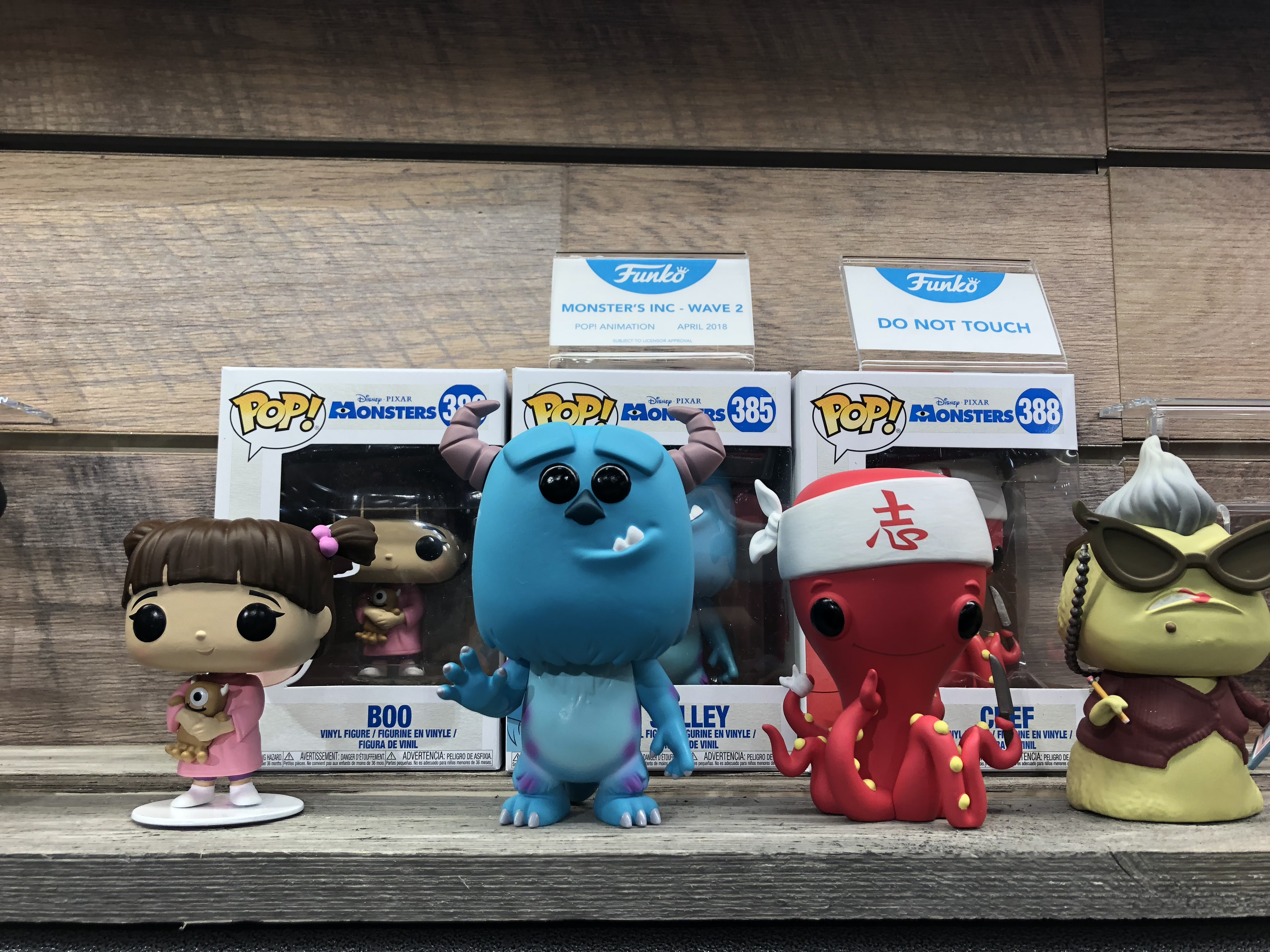 Monsters, Inc. Pop! Vinyl Wave 2 includes Boo, Sulley, Chef, and Roz.