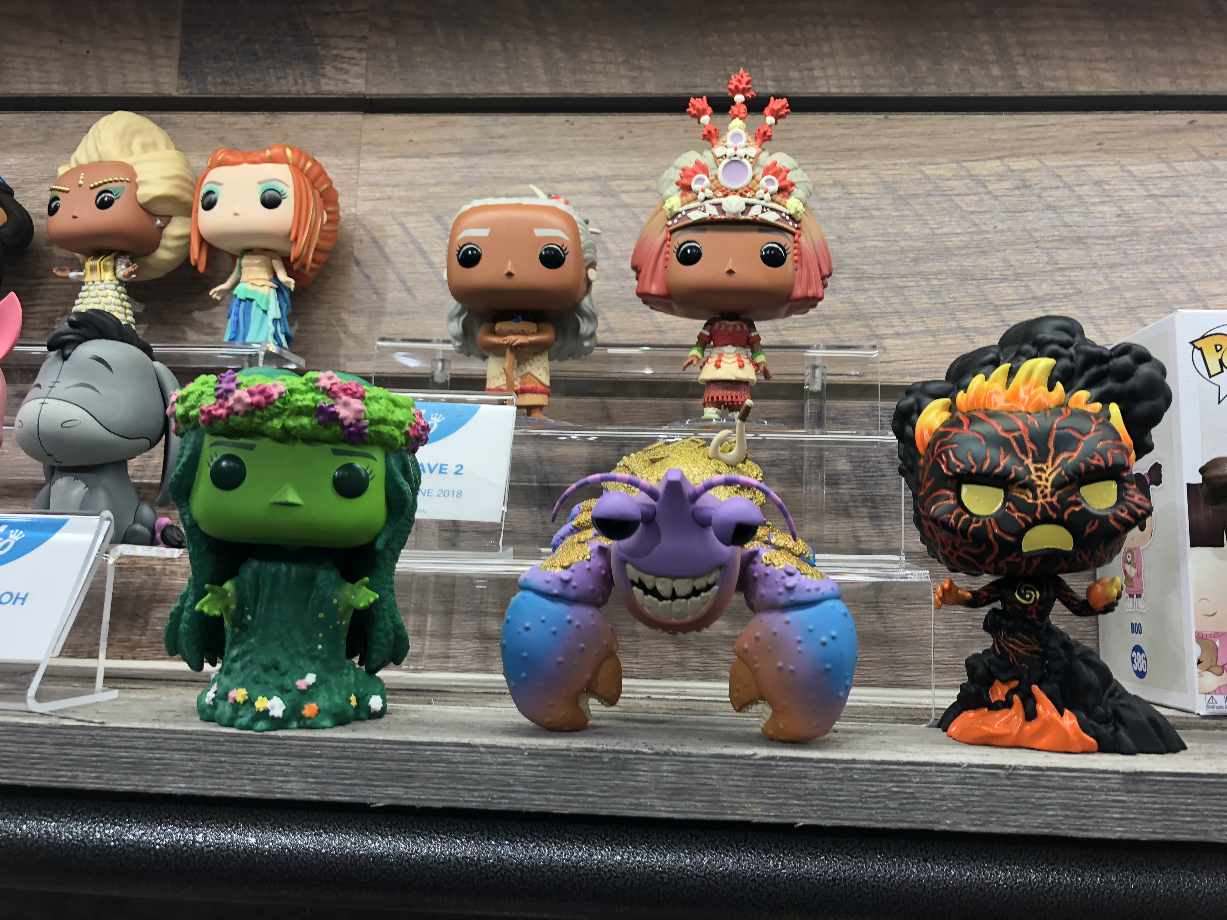 Moana Pop! Vinyl Wave 2 features Moana in her royal headdress, Grandma Talla, Te Ka, Te Fiti, and Tamatoa.