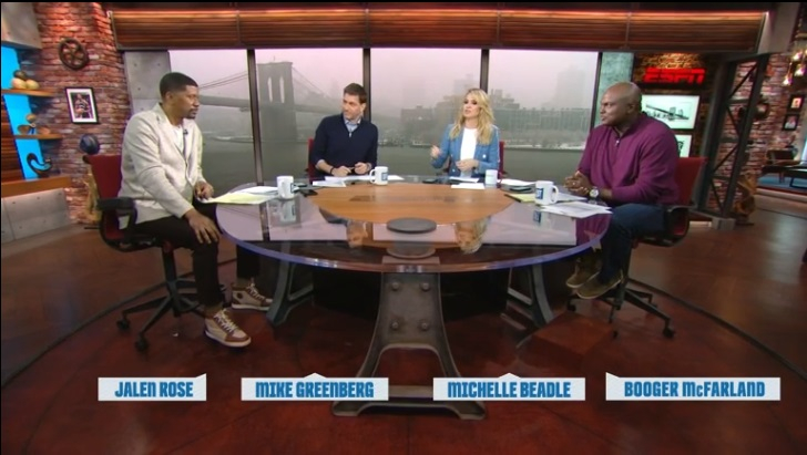 Today ESPN launched their new sports oriented morning show Get Up! With longtime ESPN voice Mike Greenberg, previous SportsNation host Michelle Beadle and basketball player turned sports analyst Jalen Rose, along with NFL player turned sports analyst Booger McFarland.