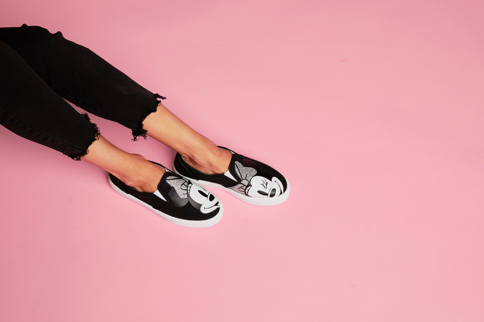 This pair clearly declares, "Classic Minnie Mouse." From her glowing expression to her flirty wink, we can't help but fall in love with this design. A unique take on the slip-on sneaker style, these comfortable shoes are made with blue Italian leather and fitted with a rubber outsole. The black and white design also features Minnie wearing a sparkly silver bow. Perfect for all-day wear, these shoes will complete any outfit.- Minnie Mouse Slip-on Sneaker for Women by Chiara Ferragni $119.99 (Originally $299.95)