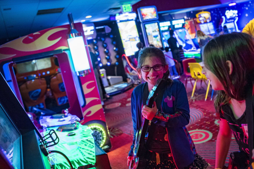 The offerings and design at the Pixar Play Zone will be familiar to any Disney fans whose children have experienced Disney Cruise Line’s Oceaneer Club. And as with the Oceaneer Club, kids can join in on the organized fun or have their own fun. In addition to the evening’s activities Pixar’s Play Zone has a variety of crafting opportunities as well with coloring pages, a suncatcher type coloring activity and others all featuring characters from the world of Pixar, and reminiscent of Pizza Planet, there’s also an arcade. The games are all free play and the team selected games that encourage interaction with others such as head to head challenges like skeeball, Hoops or Fast and the Furious, active play such as Surfers or Alpine Racer and for the younger set they even have the arcade game Super Big Rig which offers smaller kids the chance “drive” with a seat big enough for two so they can invite a friend to play along.