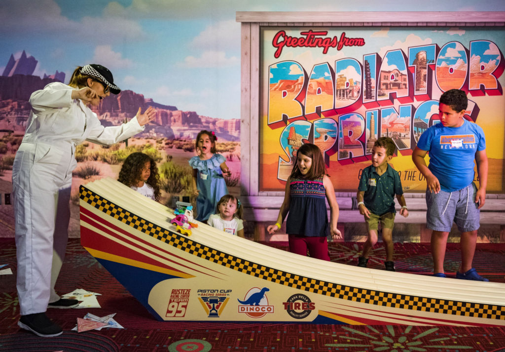Another activity of the Pixar Play Zone is the Radiator Springs Racetrack with a colorful Radiator Springs as its backdrop where the kids can build their own racecars (Duplo blocks) and challenge their new or soon-to-be friends on the soapbox derby style straight track.