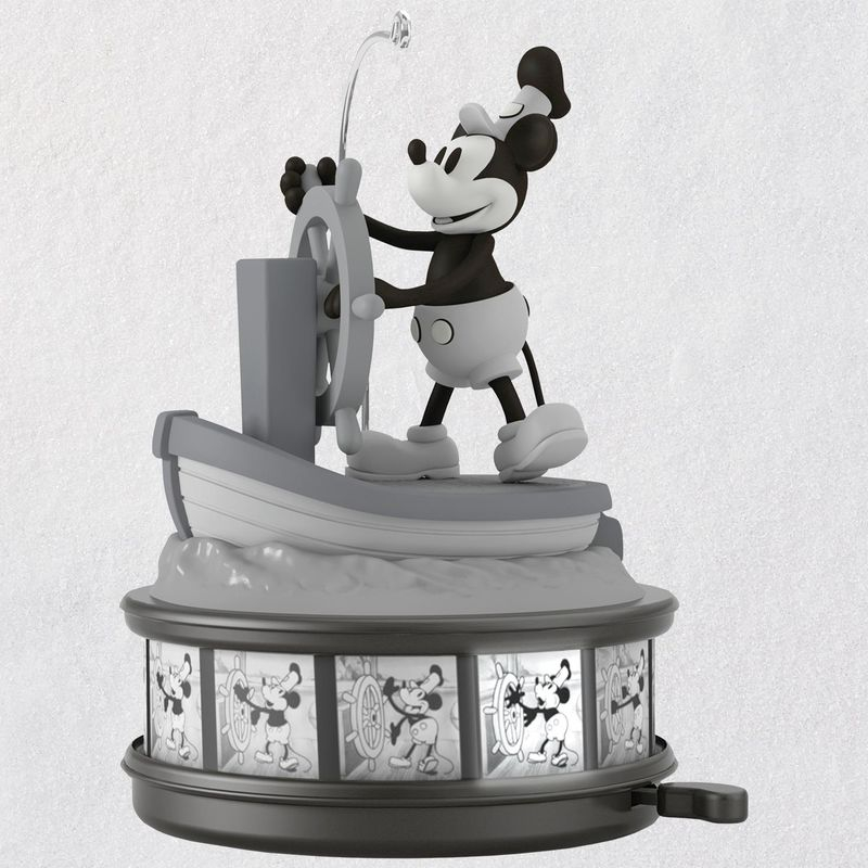 As Mickey marks his 90th birthday, Hallmark is pulling out the stops on Disney treasures to celebrate the milestone. Steamboat Willie which lights up and features audio from the classic animated short which debuted in November 1928 is being featured. Also paying tribute to Mickey and Walt Disney, Hallmark artists have created a special Partners trinket featuring the duo hand-in-hand. This ornament is based on the famous Partners Statue sculpted by Disney Legend Blaine Gibson which sits in front of Cinderella Castle at Walt Disney World and Sleeping Beauty Castle at Disneyland. This is certain to be a must-have collectible since there are not many items that feature the likeness of Walt.