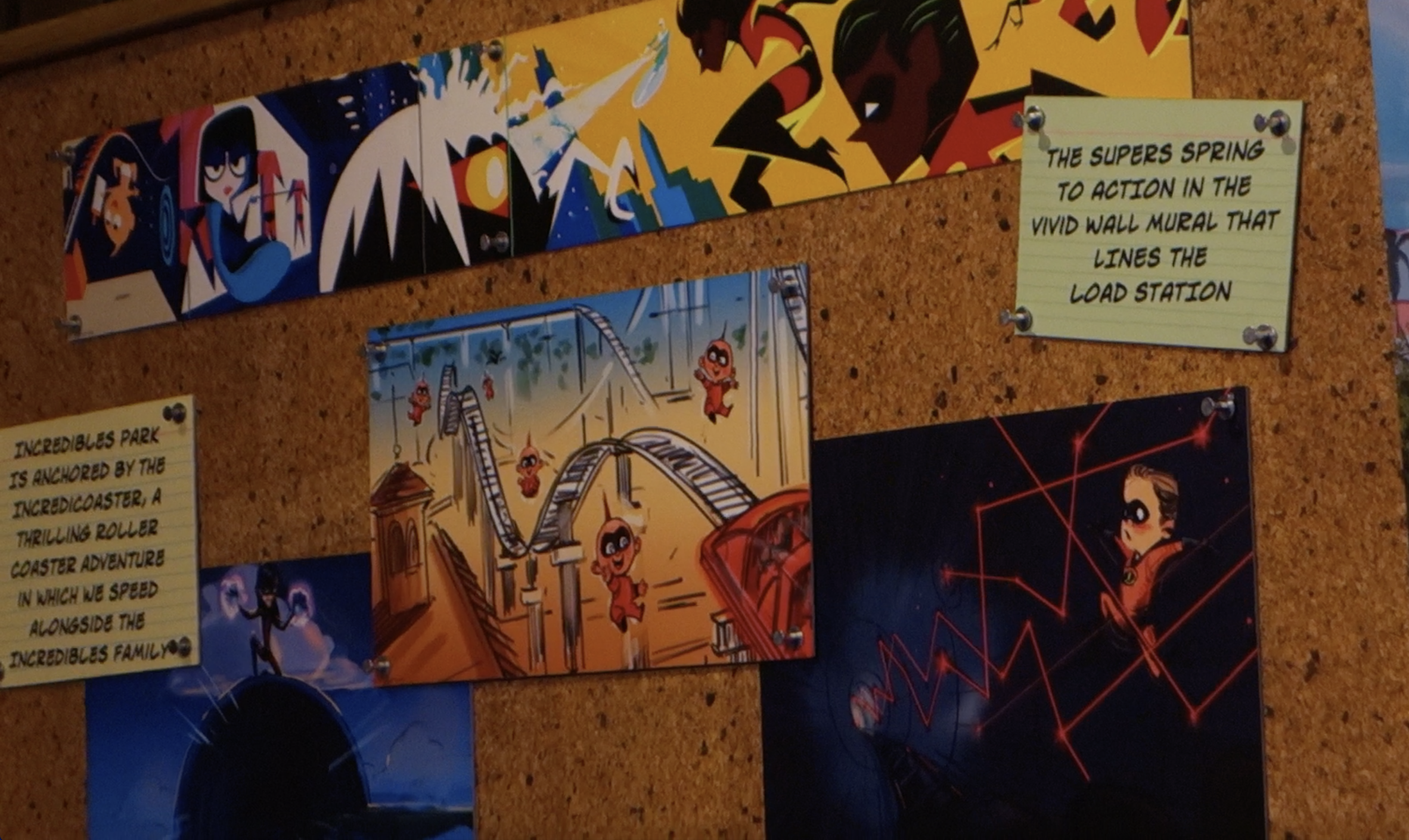 - Artist Teddy Newton worked with Walt Disney Imagineers to create a mural for the Incredicoaster load area, the artwork on a wall of Jack-Jack Cookie Num Nums kiosk, and the arch at the entry of Incredibles Park, one of four neighborhoods in Pixar Pier. These designs feature a bold, abstract, hyper-colored style to contrast with the monotones of the mid-century modern architecture in the rest of the neighborhood. Newton was a character designer on The Incredibles.