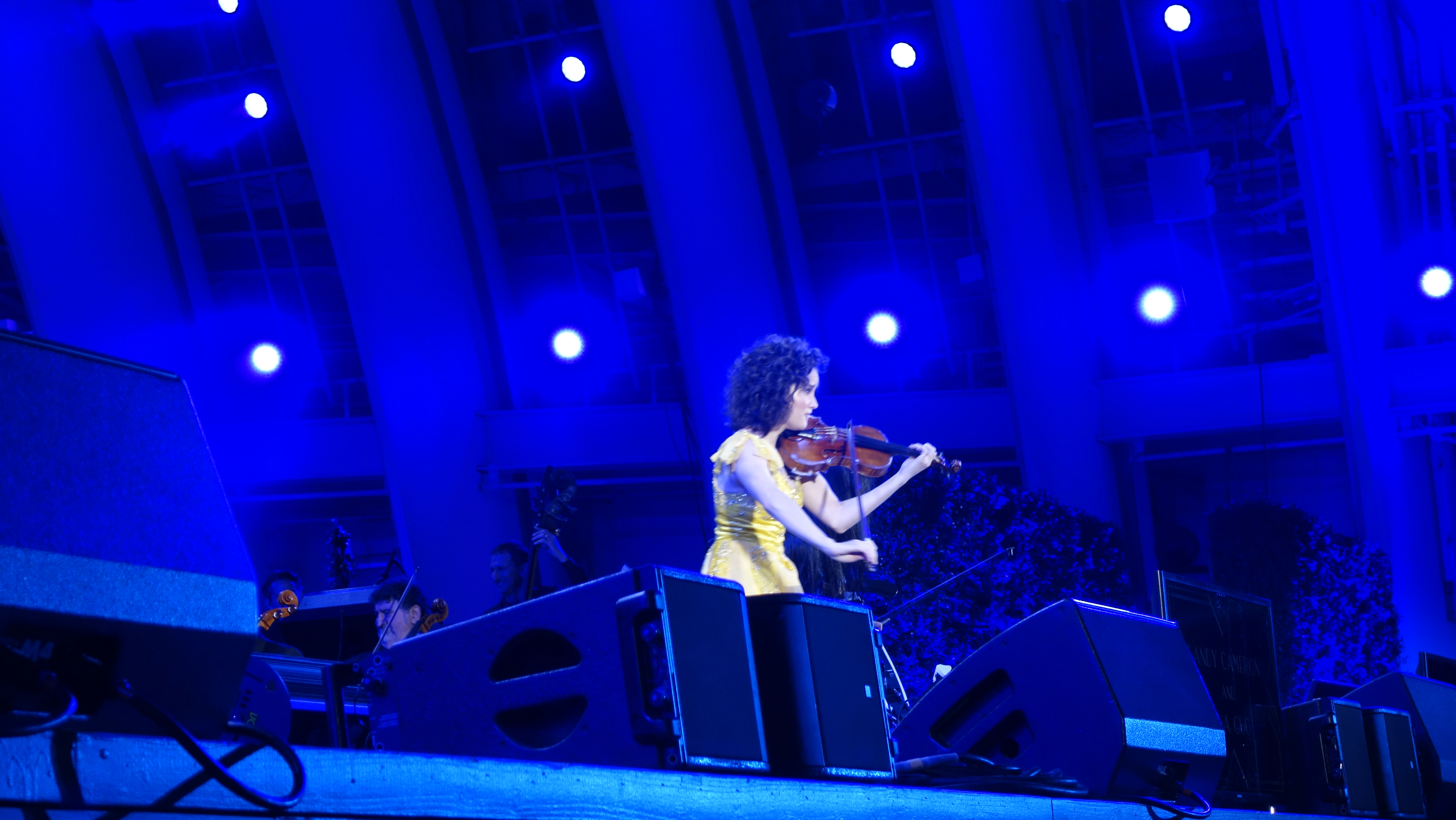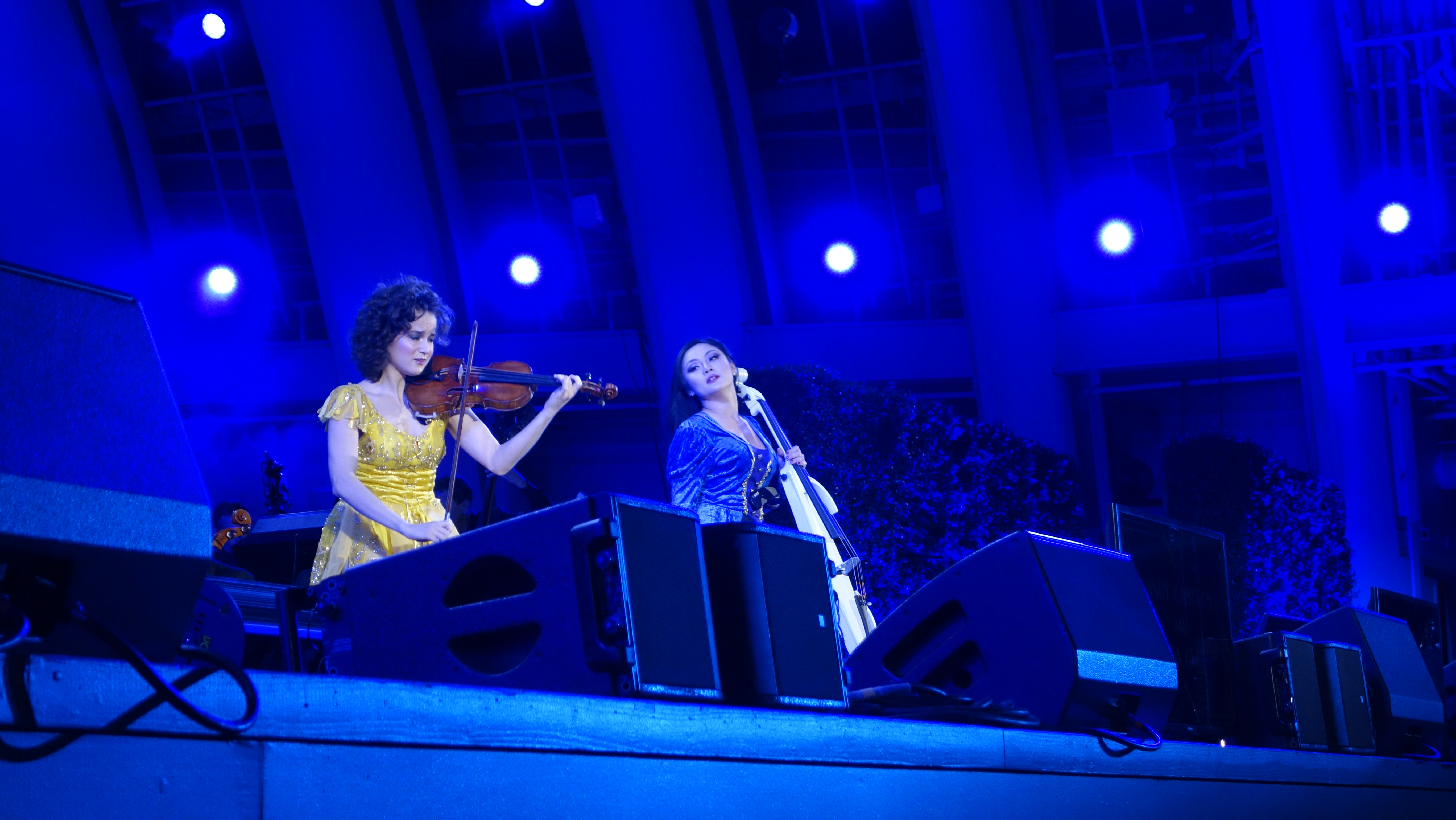 Right before the second act resumed, we were treated to an incredible violin and cello duel if you will. Violinist Sandy Cameron and Cellist Tina Gou took the stage in their yellow and blue costumes for Belle and Beast. Each lady played so intensely and beautifully, we almost forgot there was an entire orchestra behind them!Act II
