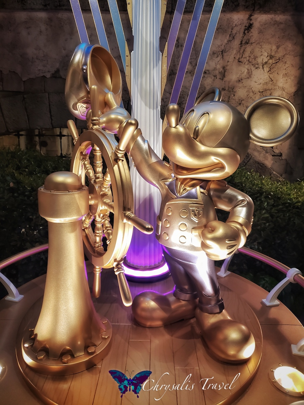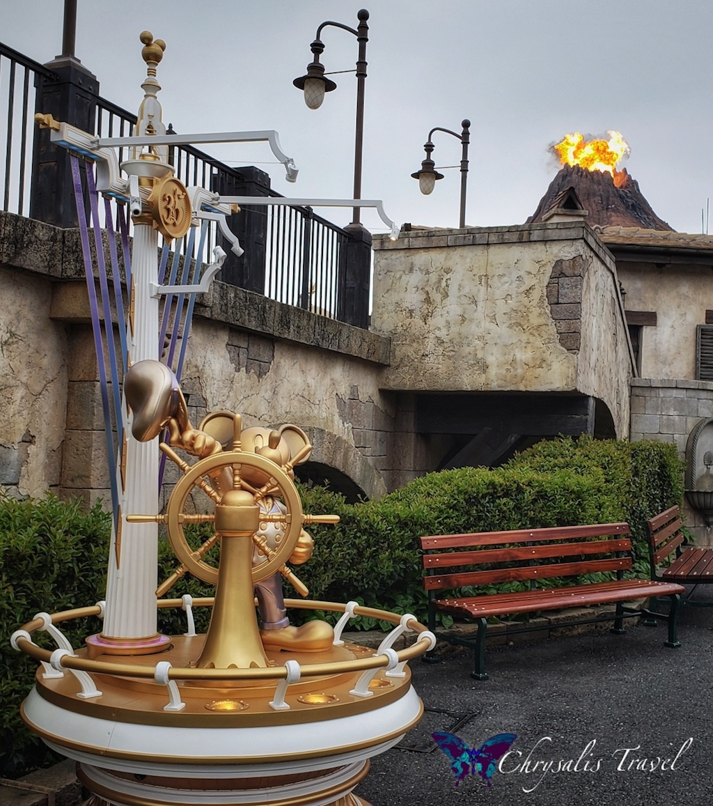 In honor of the 35th “Happiest Celebration,” Tokyo Disney Resort had multiple Mickey statues placed throughout the Parks. ‘Mickey marks the spot’ on the DisneySea Park map. Here are some of our favorites, complete with nicknames.Admiral Mickey guards Mediterranean Harbor, under the watchful eye of Mount Prometheus.