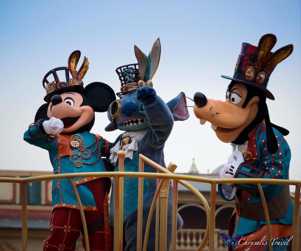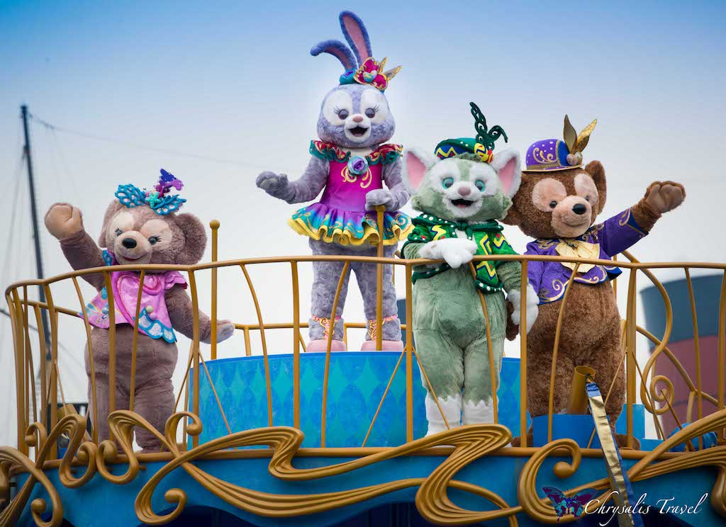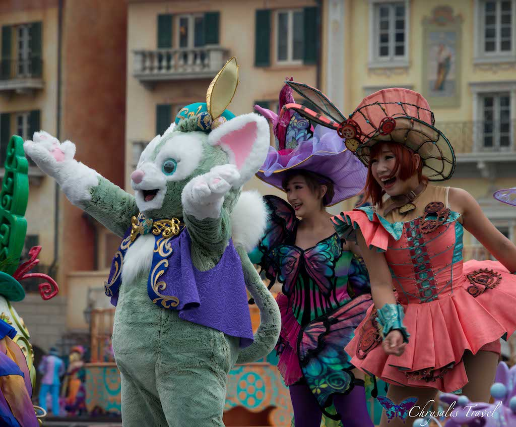 The “Fashionable Easter” parade at Tokyo DisneySea changes slightly each year. It is always an array of color and high-energy fun. Incorporating a cast of 115 performers with Disney characters on five boats and three stages, “Fashionable Easter” is certain to lift your spirits.Disney characters and their friends are dressed to represent each of the themed lands – or ‘ports’ – of DisneySea.