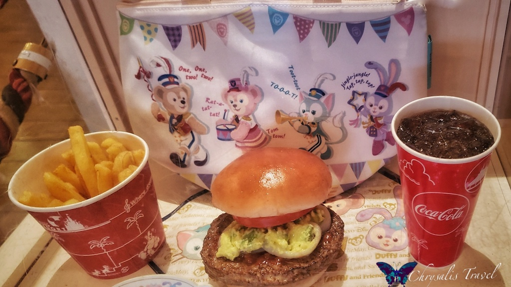 Tokyo DisneySea hosted all the Easter festivities this year. See our coverage of “Fashionable Easter” here.Special Easter menus create novel dining experiences. New York Deli features this ‘special set.’ It includes a shrimp burger with fries, drink, and tote bag. The desserts were delightful.
