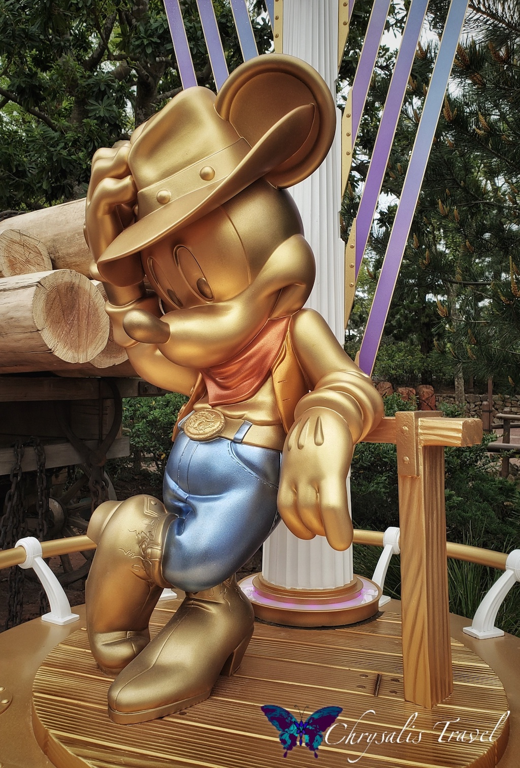 In honor of the 35th “Happiest Celebration,” Tokyo Disney Resort had multiple Mickey statues placed throughout the Parks. ‘Mickey marks the spot’ on the Disneyland Park map. Here are some of my favorites, complete with nicknames.Cowboy Mickey greets you with a friendly ‘Howdy’ near Big Thunder Railroad.