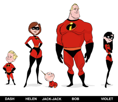 The powers assigned to each character correspond to their family duties. “Men are always expected to be strong so I had Bob have super strength. Mothers are always pulled in a million different directions so I had her be elastic. Teenagers are insecure and defensive so I had Violet have force fields and invisibility. Ten-year-olds are energy balls that can’t be stopped. And babies are unknowns, maybe they have no powers, maybe they have all powers, we don’t know. So that’s what Jack-Jack was, he was seemingly the first normal one in the family and then at the end of The Incredibles you find out that he’s a wildcard and that he’s sort of a Swiss Army Knife of powers.”