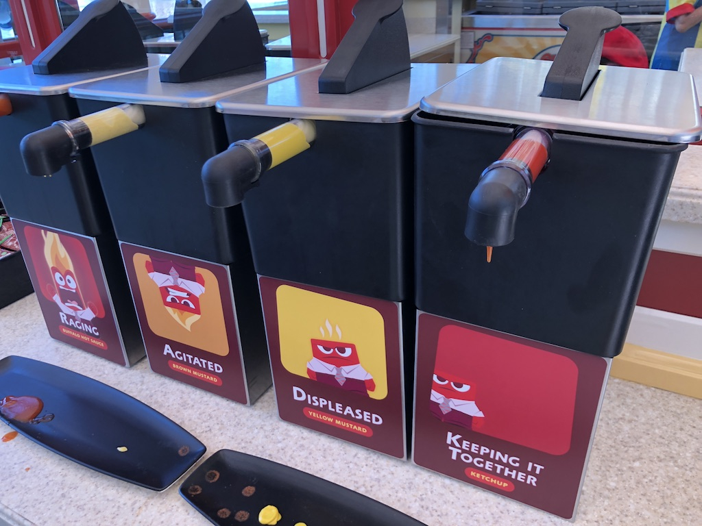 When Anger's not in control of Riley's emotions, he comes over to Pier to sell his signature hot dogs...in a variety of spice levels. The angrier he is, the spicier the hot dog!For more about this updated land, check out our Complete Guide to Pixar Pier.