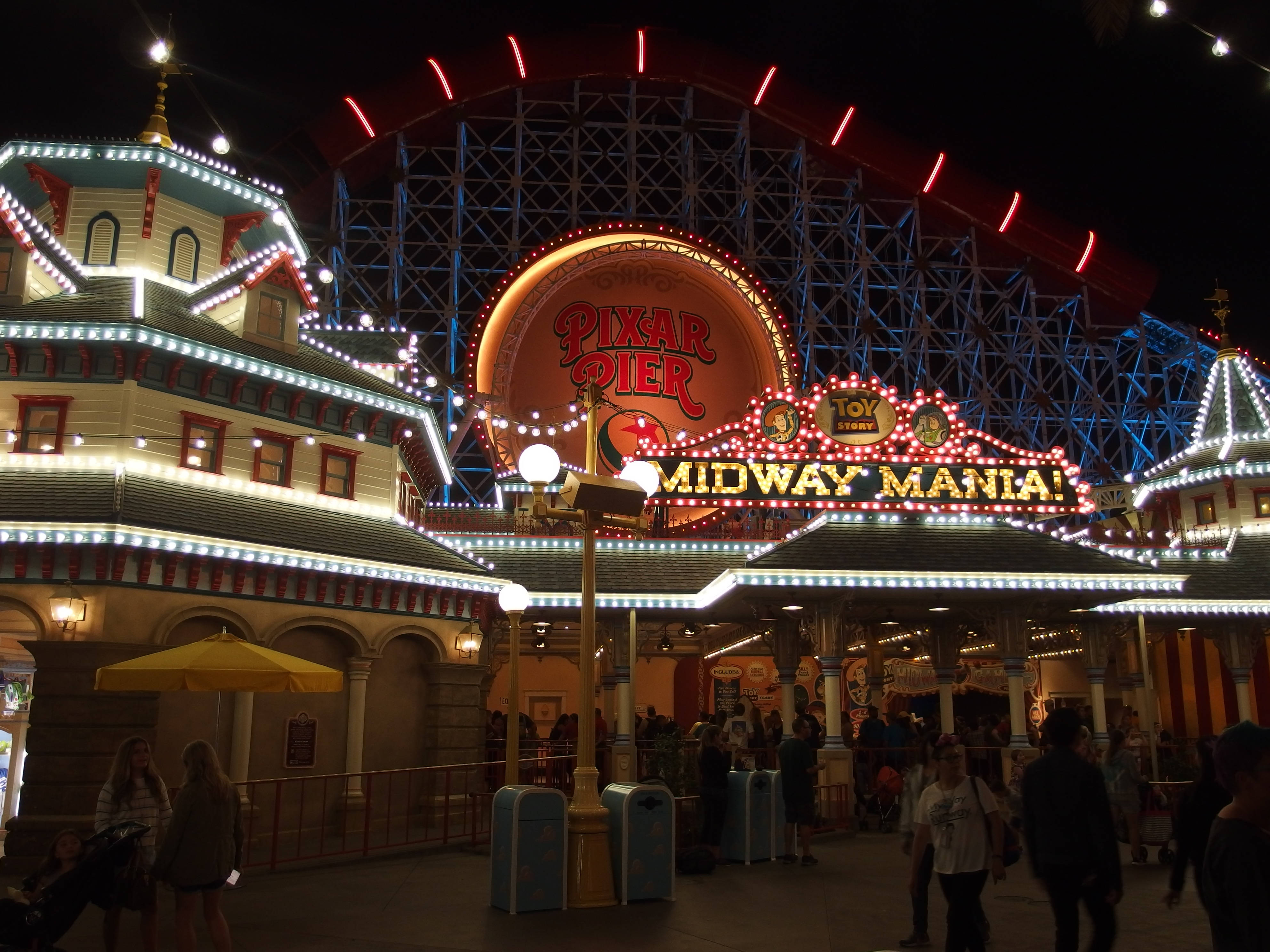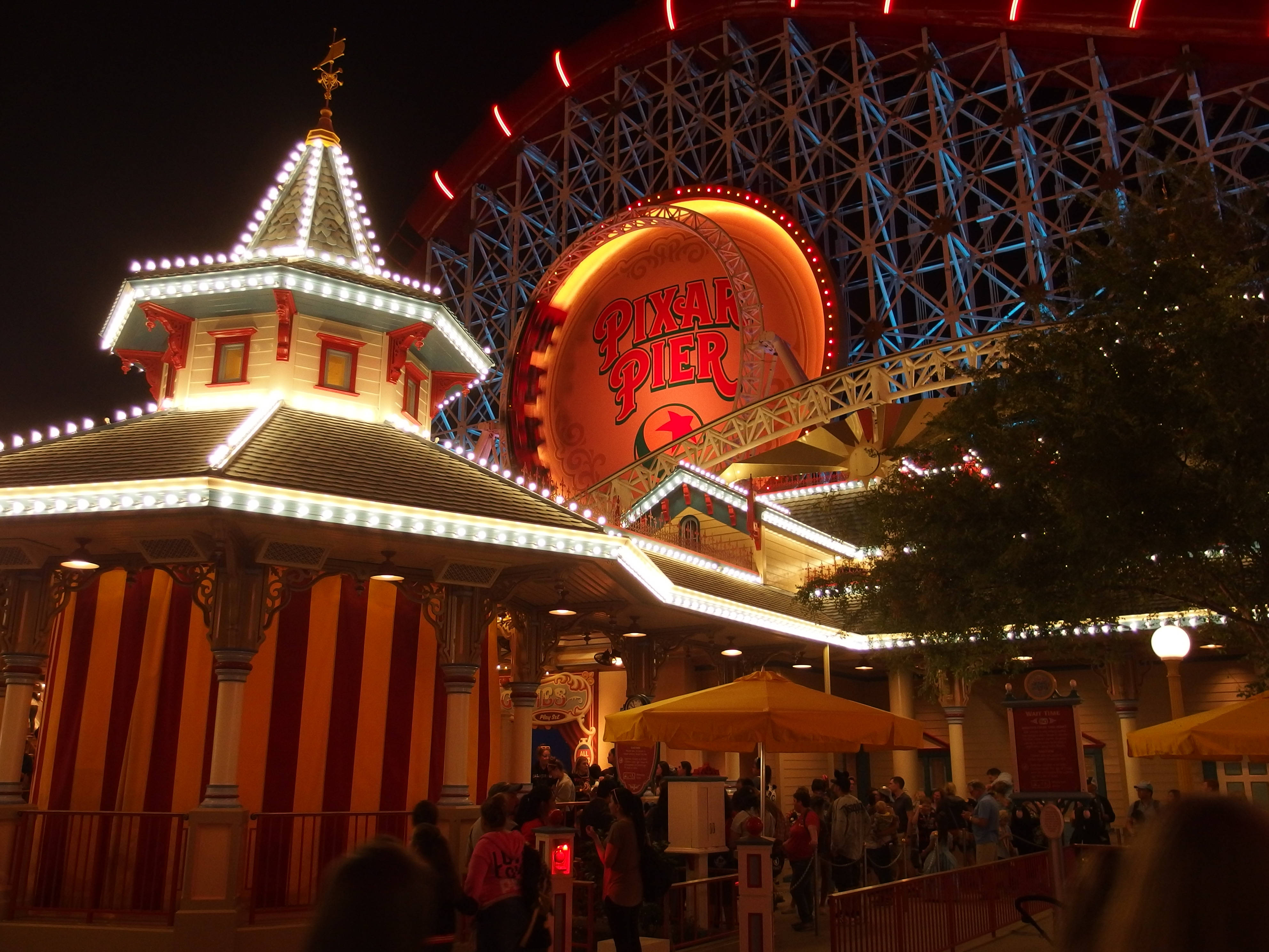 We've shared many, many photos with you of Pixar Pier, and most of those have been taken during the daytime. Now we want to show you the Pier all aglow in its nighttime glory.