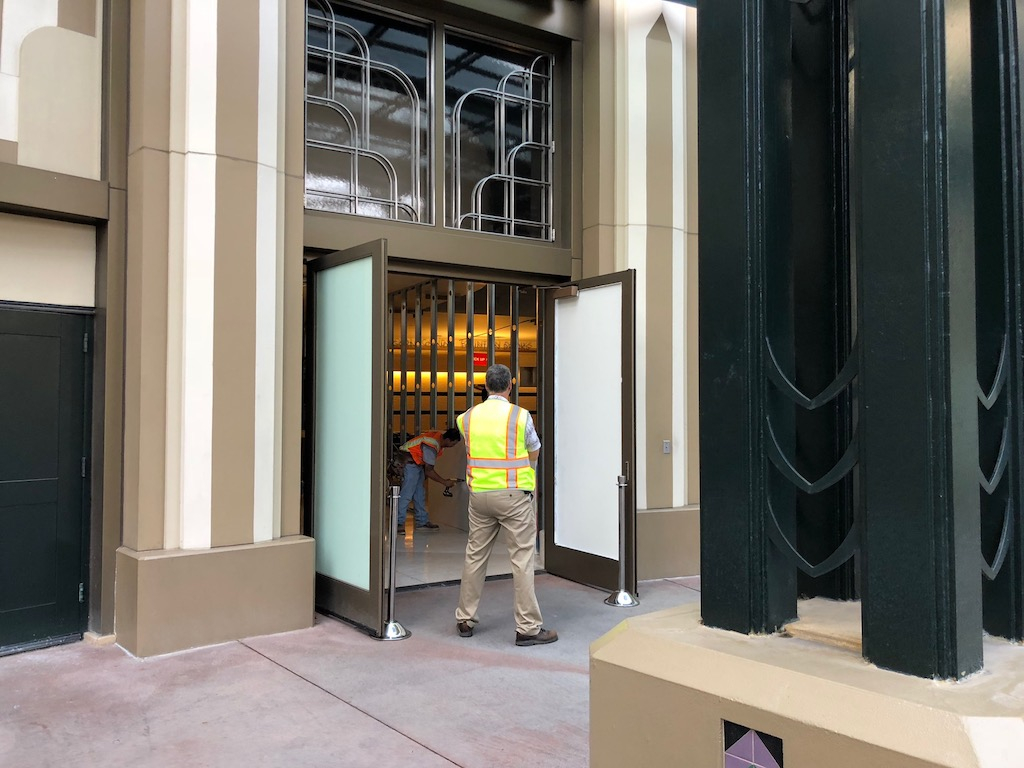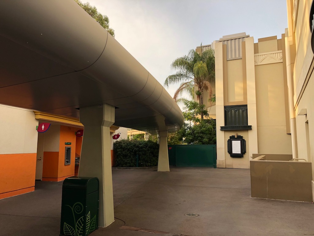 According to security cast members, a move to a new location was imminent. Since the entire area was scheduled for demolition and site preparation, a new security location was to have been established between the east end of the AMC Theater building and the Lego Store. Guests would have been routed completely around the AMC Theater and through an area that had previously been used by cast members. But work on the new gate, expected to be temporary and therefore quickly accomplished, has taken weeks longer than anticipated. According to several sources, there is an issue with the area immediately adjacent to the former Richfield Gate.