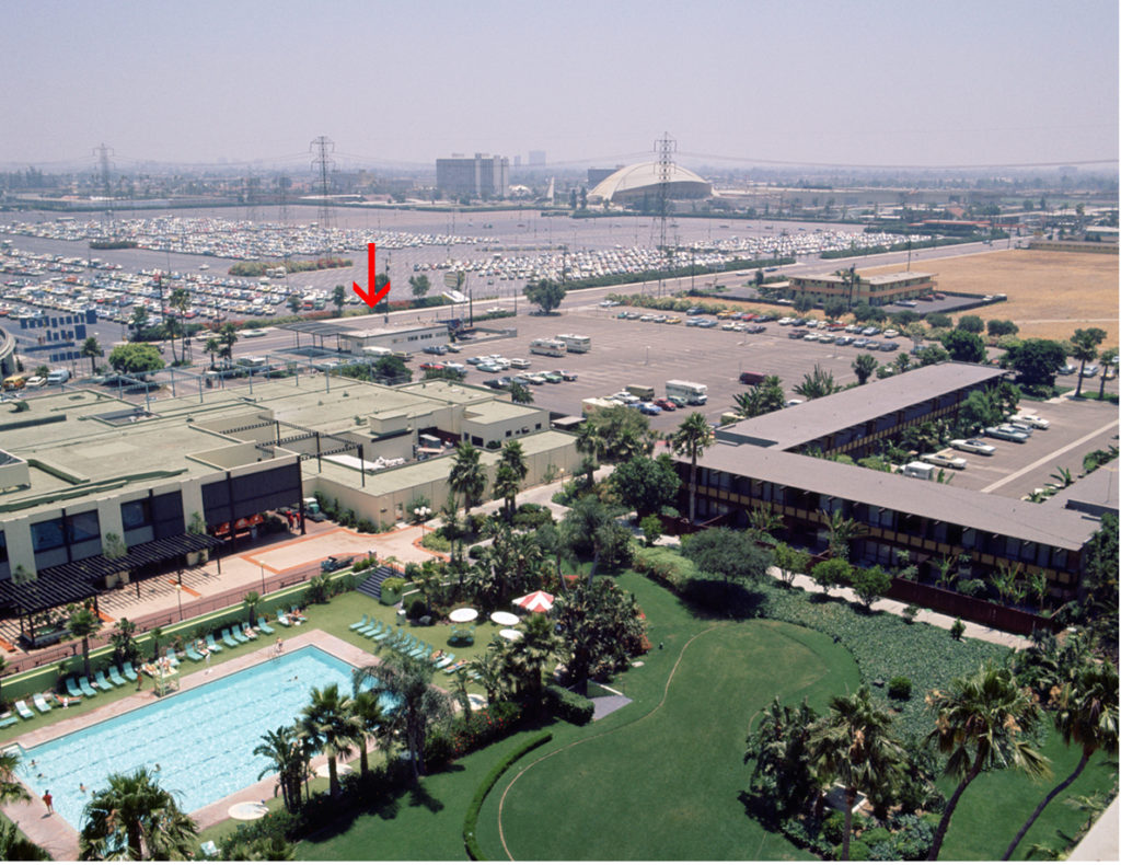 To understand what is happening behind the construction fence that now ranges along the west side of Disneyland Drive, one must go back to the earliest days of Disneyland. In late 1955 the Disneyland Hotel opened across the street from the exit from Disneyland’s public parking lot, on what was then West Street. Just to the south of the hotel entrance was a Richfield service station. This was sited to take advantage of motorists leaving Disneyland at the end of the day. Richfield was also the sponsor of the Tomorrowland Autopia as well as a show called The World Beneath Us.