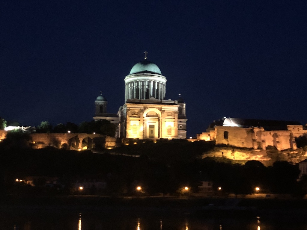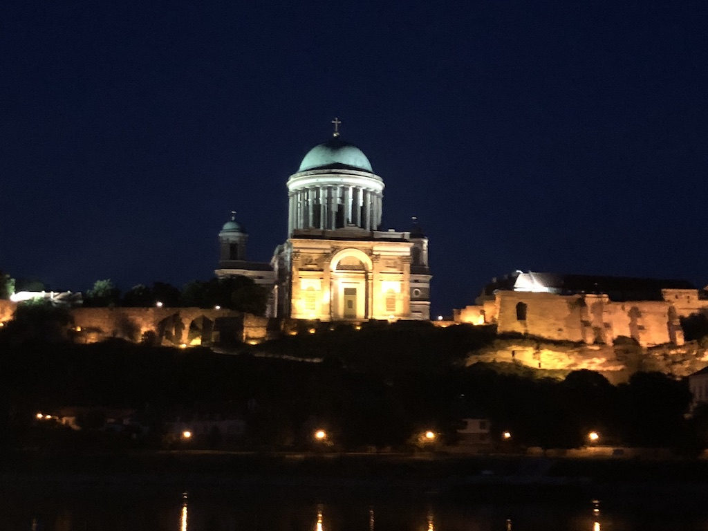 Upon retiring to our room we discovered our pin of the day. Today, Donald is "Hungary for Goulash." We also got a card that explained pin trading and showed some of the pins available on other adventures. We also received a recipe card for Hungarian Sauerkraut Soup. I went back to the sundeck around 9:15 to see the biggest church in Hungary- the Basilica of Esztergom.