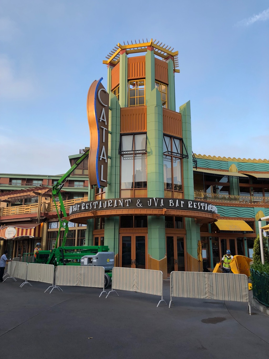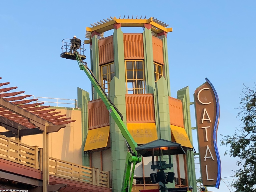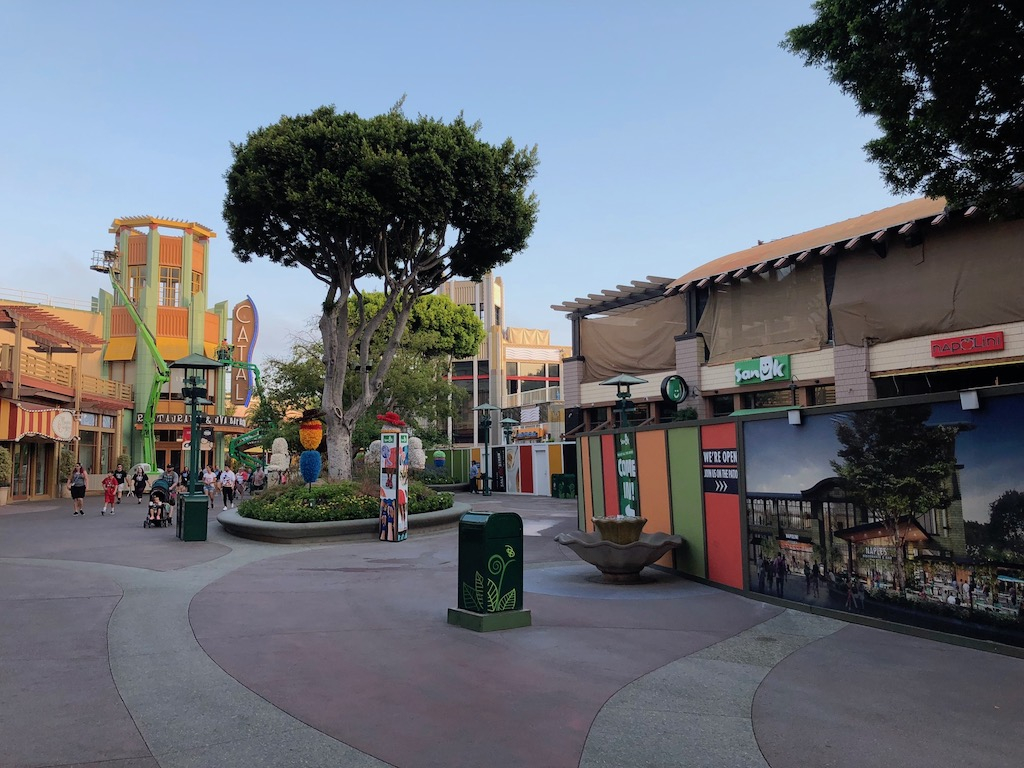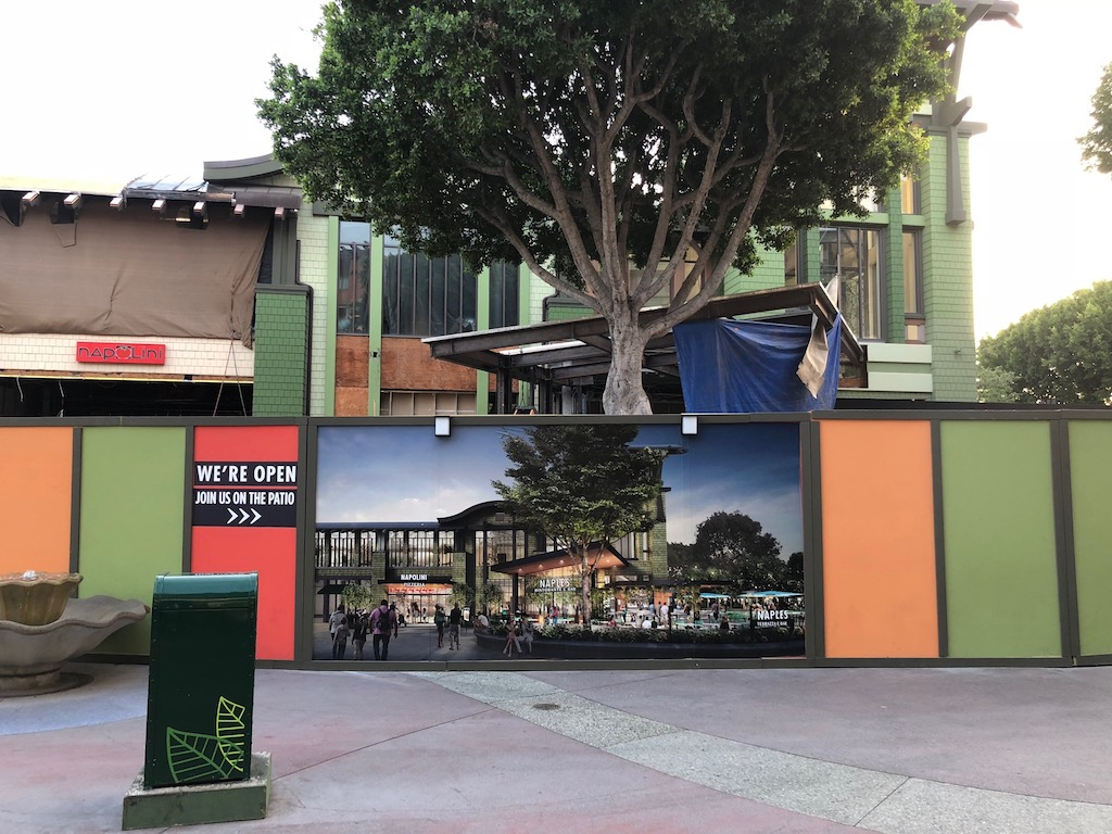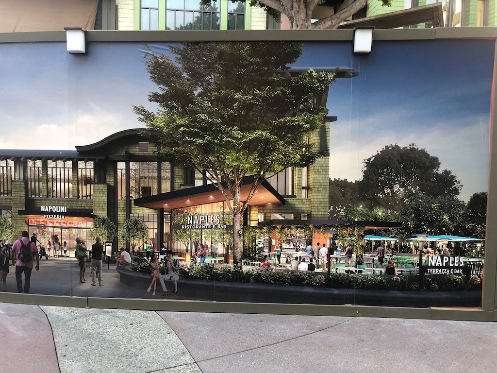 Work in Downtown Disney is concentrated on Naples Ristorante, new food and drink venues coming to the north side, and a new color scheme for the entire area.