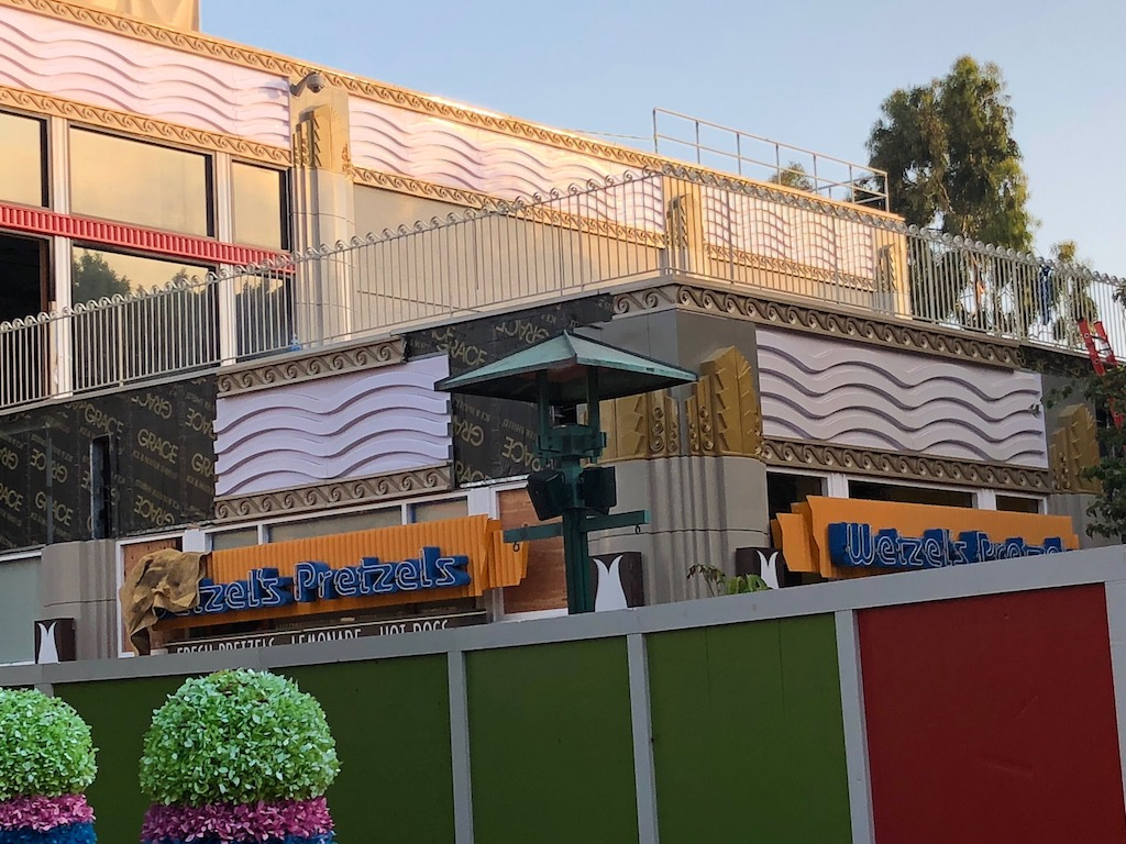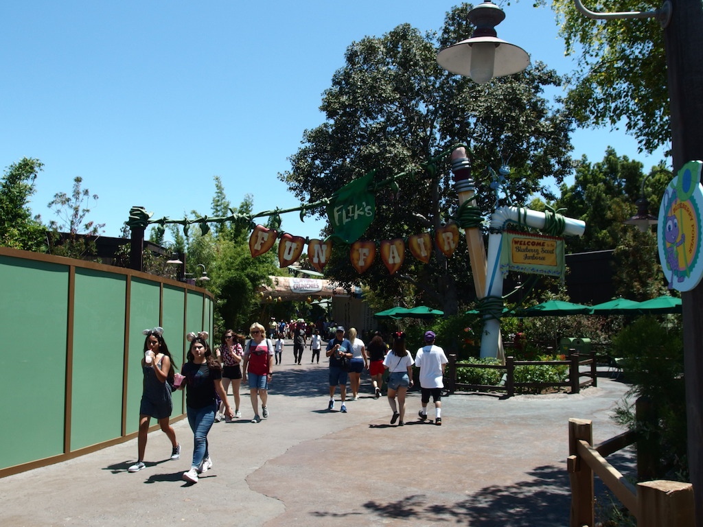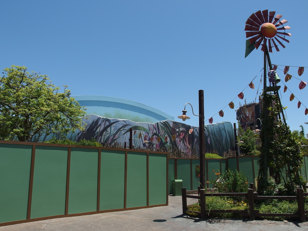 An expanded construction wall has appeared around the former It’s Tough To Be a Bug theater